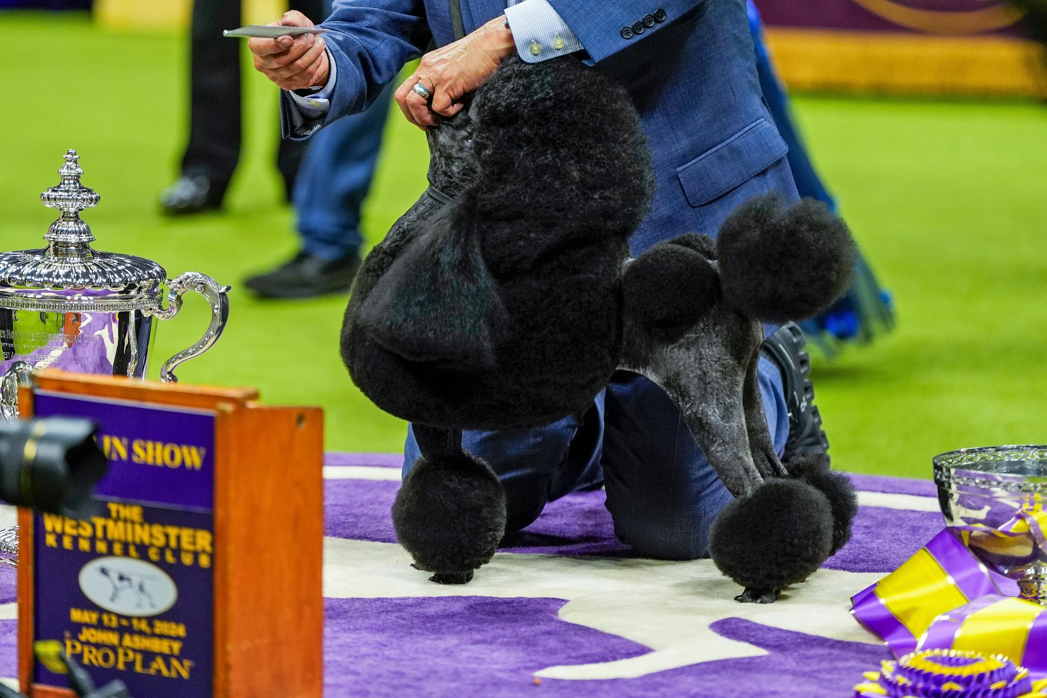 A miniature poodle named Sage won the top prize Tuesday night at the Westminster Kennel Club dog show, in what veteran handler Kaz Hosaka said would be his final time at the United States' most prestigious canine event. After 45 years of competing and two best in show dogs, he plans to retire.