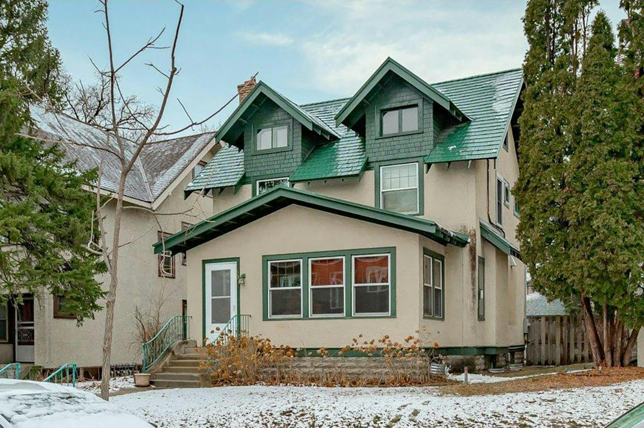 Built in 1913, this two-bedroom, two-bath house in the South Uptown neighborhood has 2,275 square feet and features two bedrooms and a deck on the upper level, walk-up attic, fireplace, formal dining room, stainless-steel kitchen appliances, full basement and a two-car detached garage. Listed by Todd Kellogg, Re/Max Results, 952-848-2491.