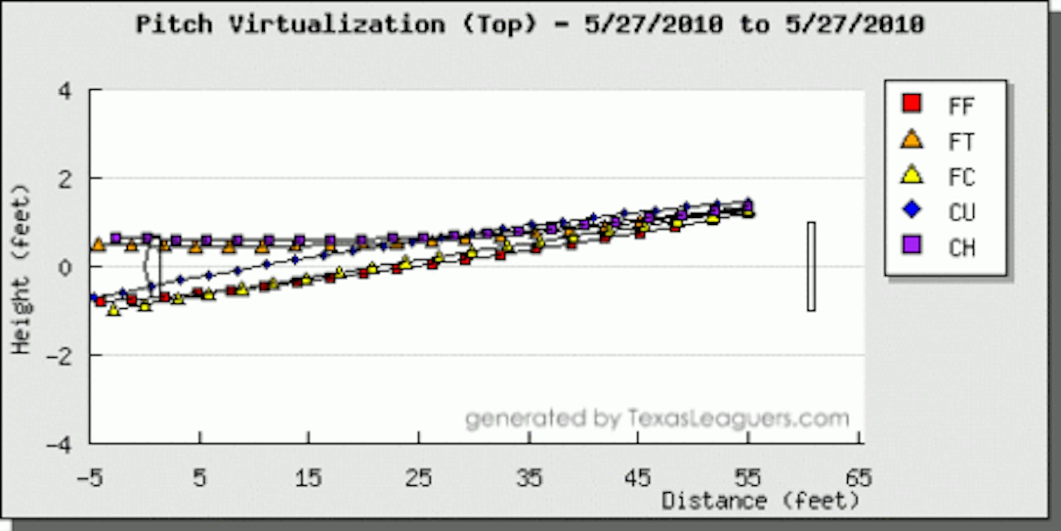 Whether it is the mechanical adjustment or just a healthy elbow, Blackburn has been a far better pitcher as of late. He is 5-0 with a 2.65 ERA in his five May starts, giving up just nine extra base hits and only five walks in 37.1 innings of work, making a resounding pitch for AL Pitcher of the Month. Part of the reason behind this improvement appears to be his ability to avoid locating pitches in the mid-section of the strike zone: