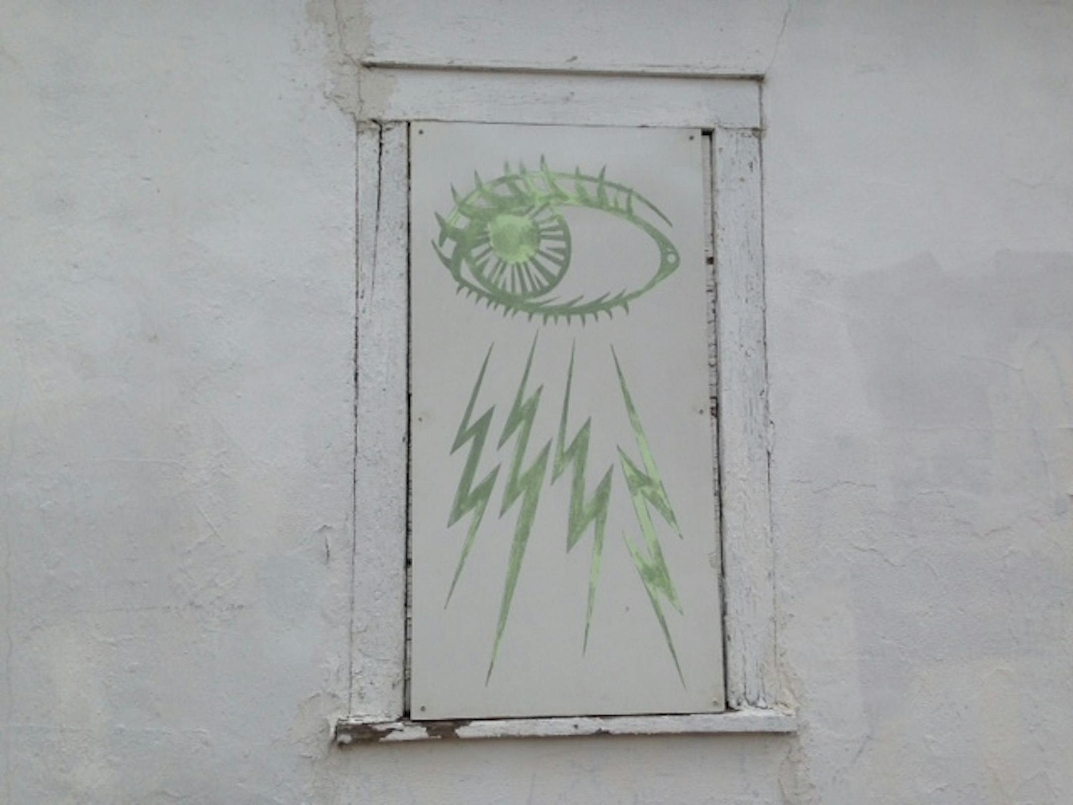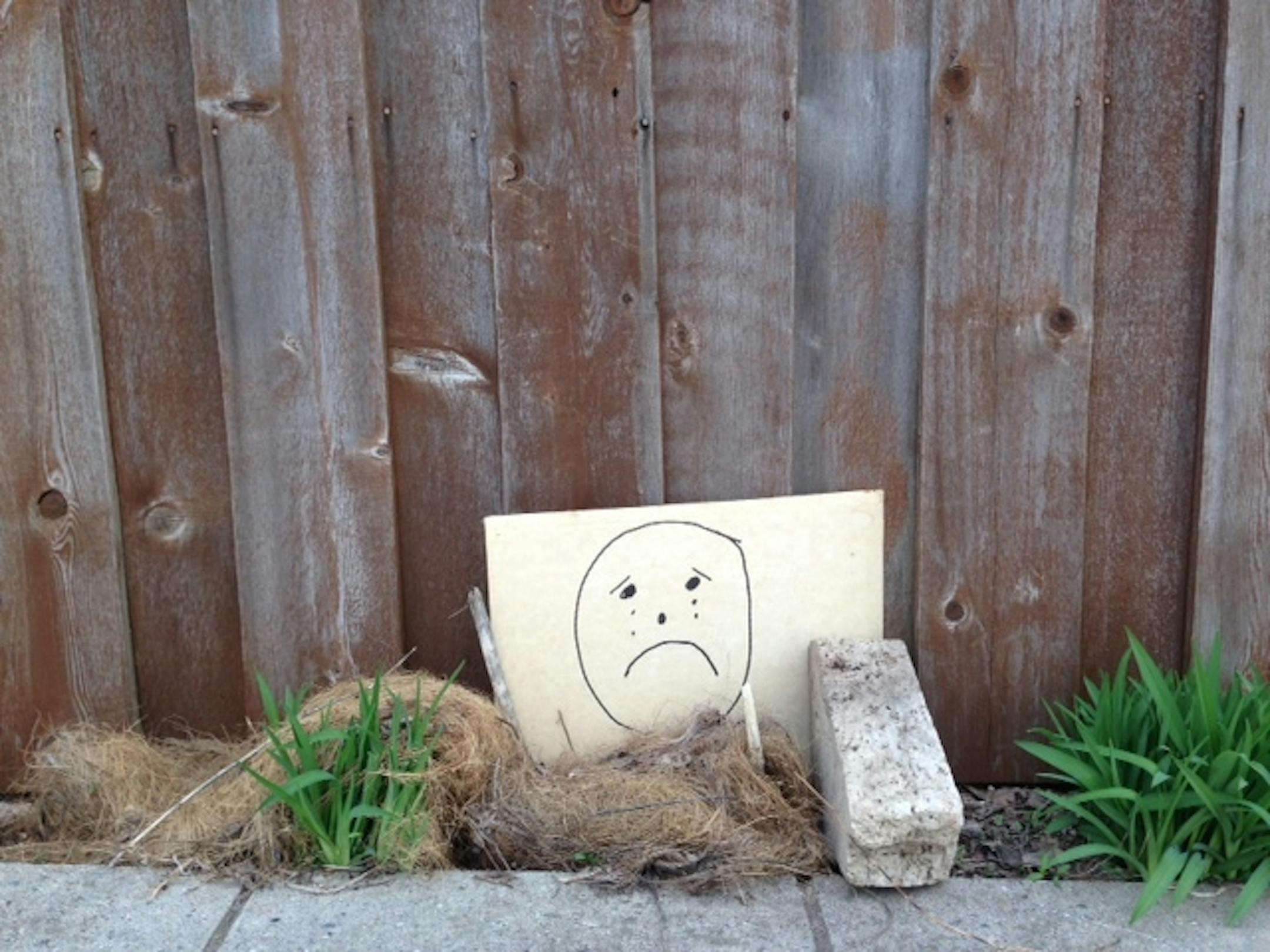 You'd be sad, too, if someone left a cigarette in you (Alley art in South Minneapolis)