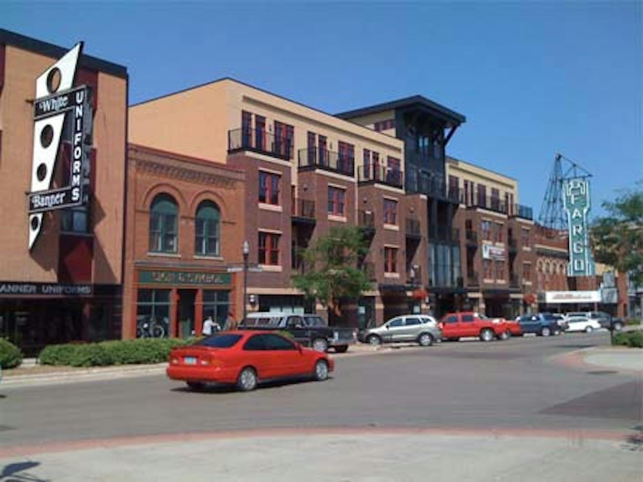 The economy's good up here. Housing is plentiful and affordable. Downtown has enough small shops, which we are hereby required by law to call "funky." It has something else: a human scale and a sense of history. Yes, smartarse, Fargo has history. The names of the people who built the downtown are still on the cornices; most of the old downtown is intact, except for a small district leveled by urban renewal - now one ofthe emptiest, least-trafficked part of downtown - and the 5 Spot Bar block, consumed by fire and never rebuilt. New condos: