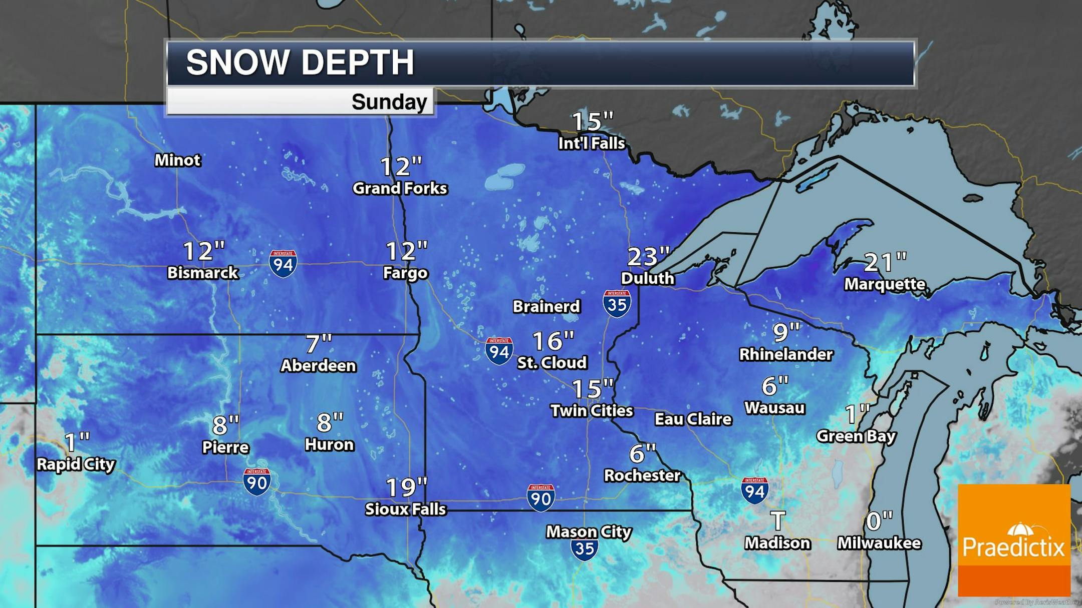 Taking a look at snowfall since July 1st, many locations have seen above average amounts so far this season, but folks from near Sioux Falls to the Twin Cities and towards Duluth are nearly 20" to 30" above average through January 8th.