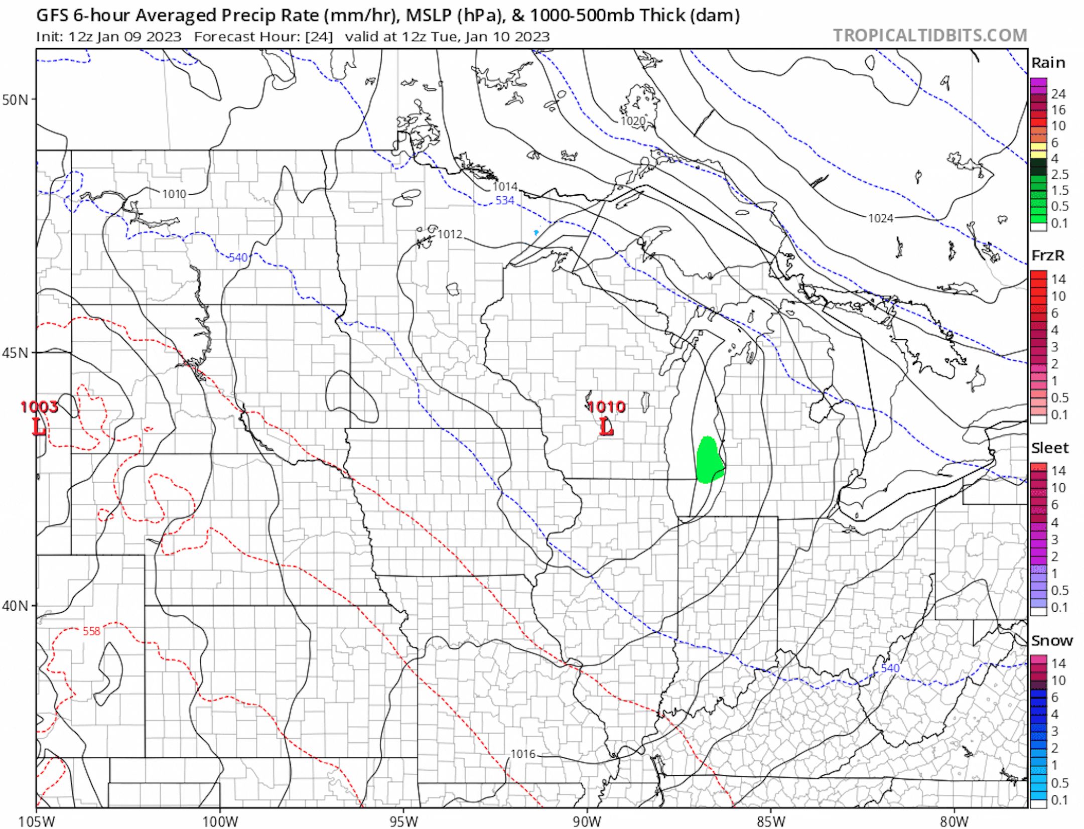Here's the weather outlook through AM Wednesday, which shows a weak disturbance pushing through the region late Tuesday night into early Wednesday morning. This band of wintry precipitation could be responsible for a minor coating of snow along and north of the I-94 corridor just in time for the AM Wednesday morning commute.
