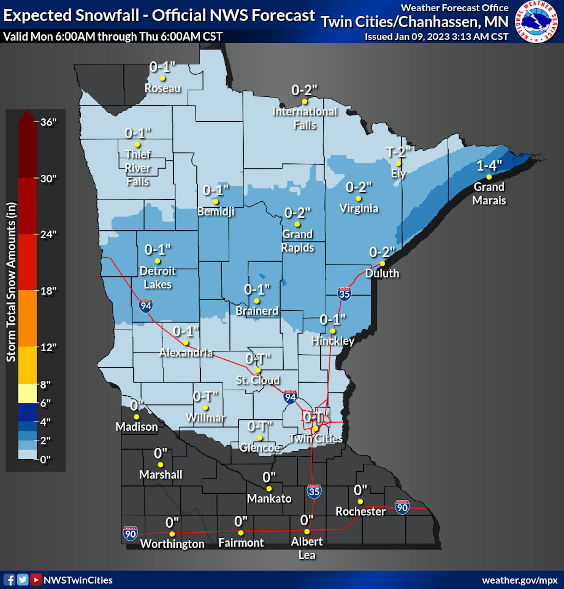 As of Sunday, January 8th, the MSP Airport recorded 15" of snow on the ground. Interestingly, this tied for the 4th greatest snow depth on record for January 8th! Cross country and snowmobile trails have been very busy and will likely stay busy over the next several days.