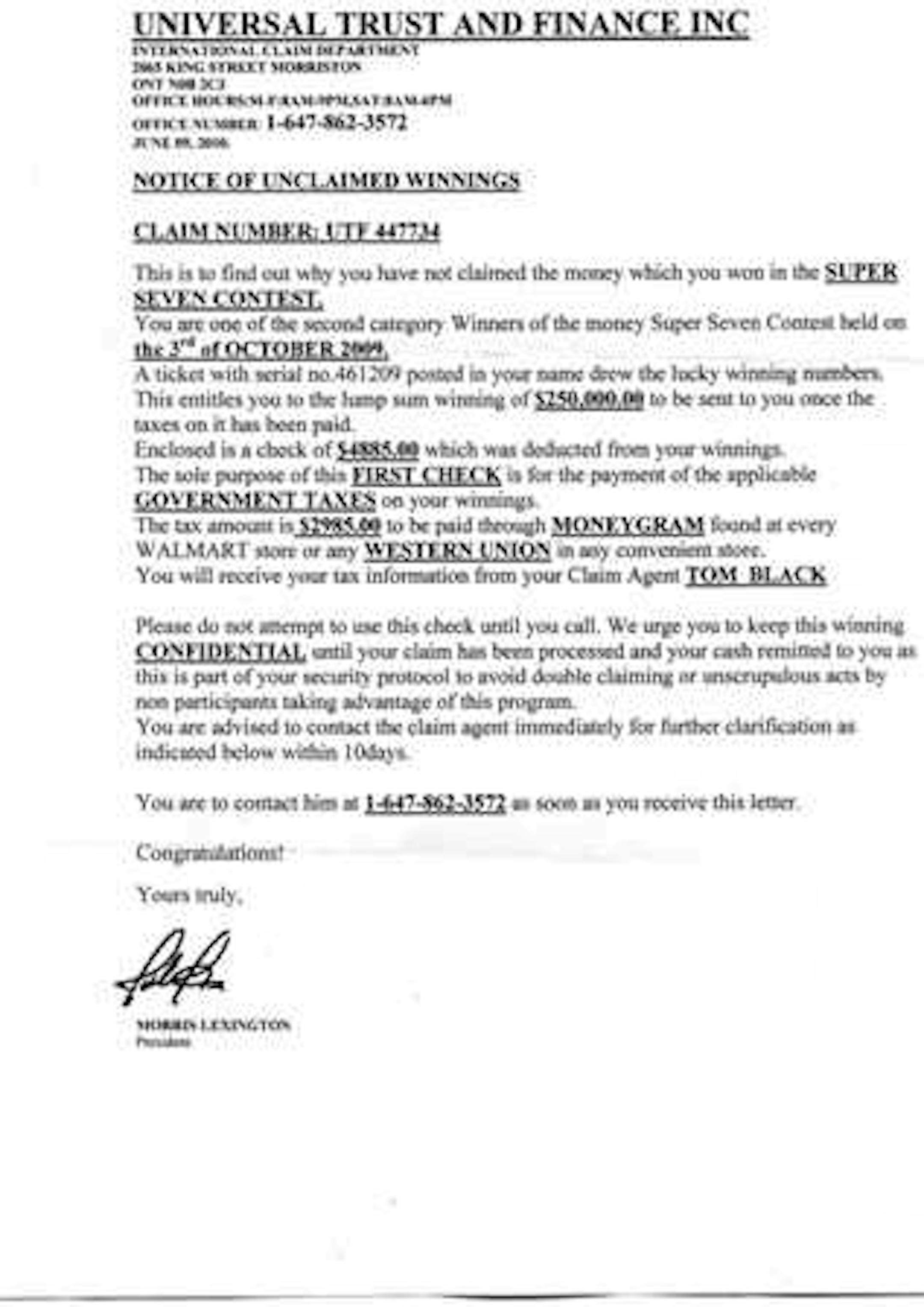 A week later, they got another "check," this one for $4,885, for taxes to collect $250,000. People do fall for these scams. The Chieses ignored them.
