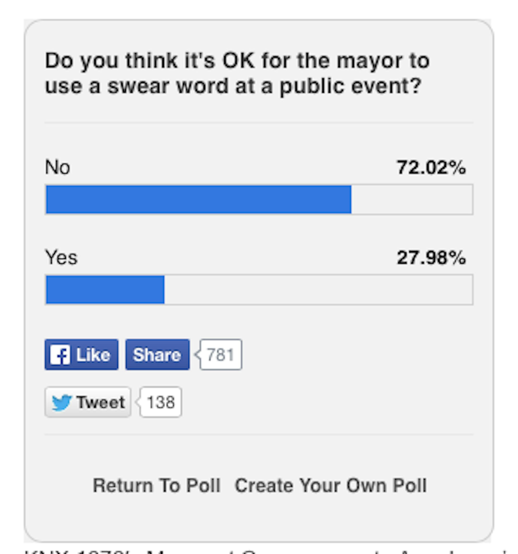 Well, it reflected them, but it didn't repeat them. Almost as if the Official Twitter Account thought hmmm, standards for public discourse, right? So, initials. Totally scientific poll on the CBS website: