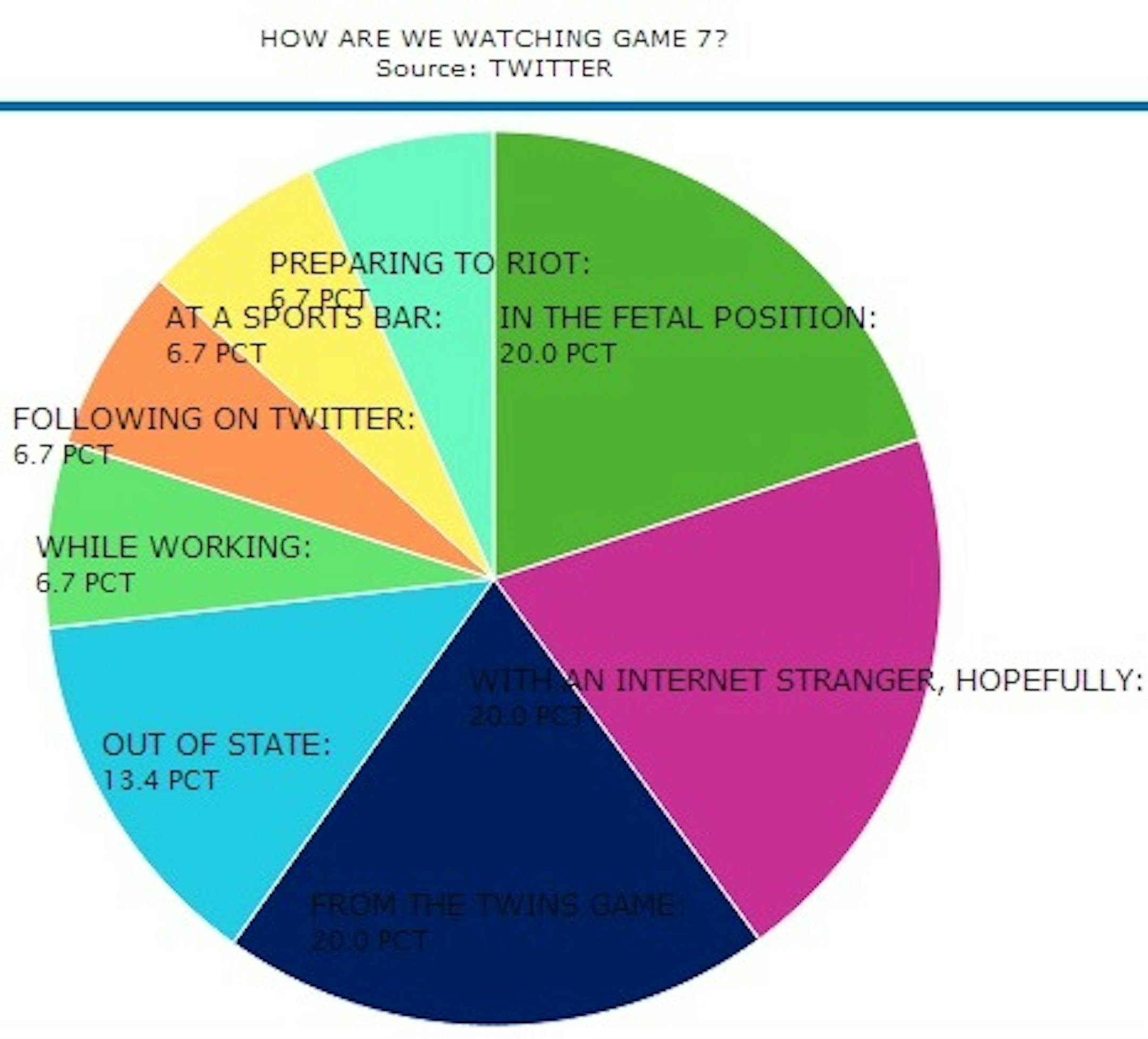 We asked you on Twitter today how you planned to watch Game 7 of the Wild/Avs series on Wednesday. Here are the very unscientific results, in handy pie chart form: