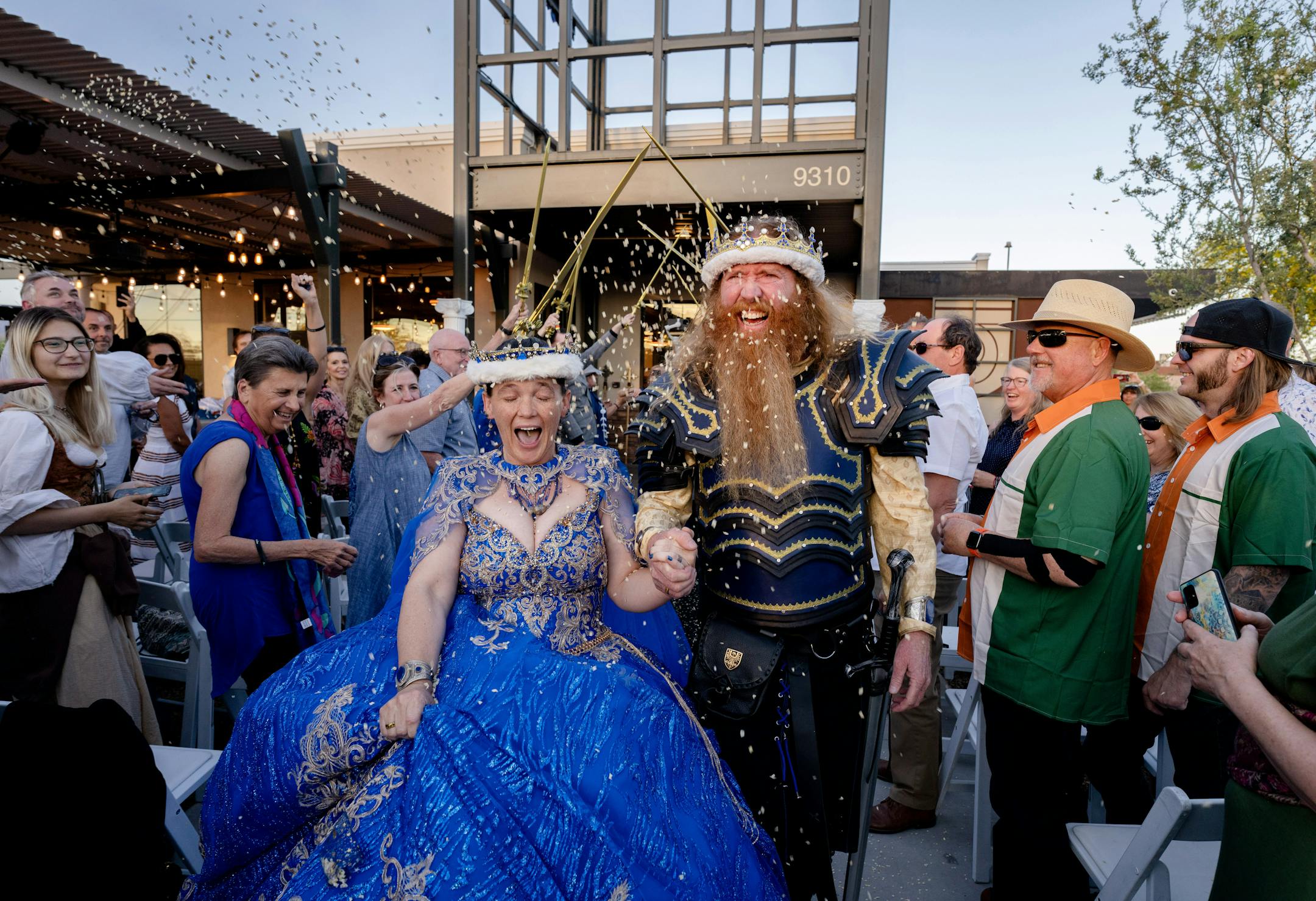 On May 5, she and Schmitt said their "I do's" at a medieval-theme ceremony that included stacks of sliders for 150 guests, a giant burger-shaped cake and flower girls who threw dehydrated onions instead of flower petals.