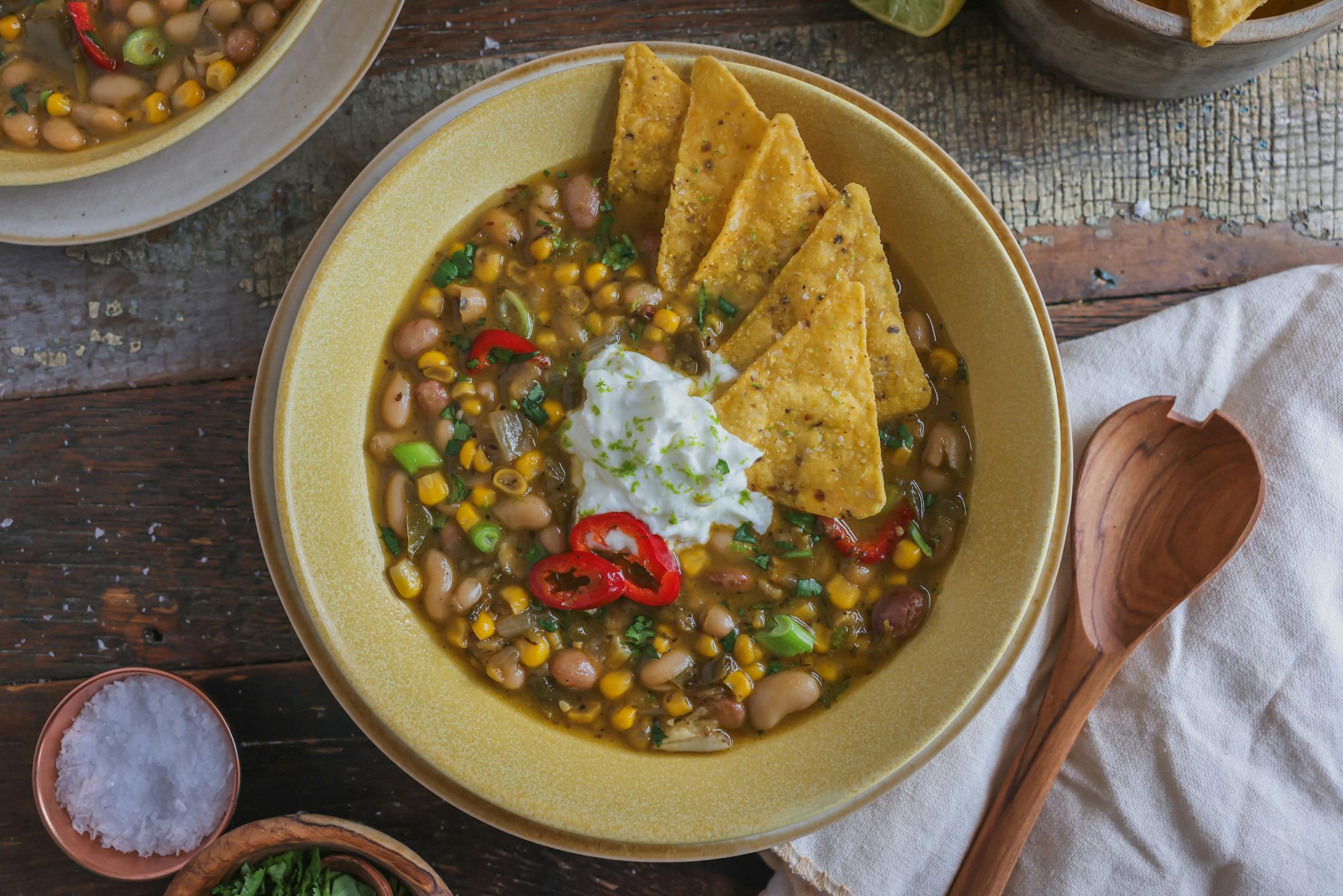 For a subzero night, my version relies on white beans and corn, mildly spiced and tamed with lime. It’s a bit lighter and brighter than the more popular red chili, and it’s finished with a dollop of cilantro yogurt to freshen things up.