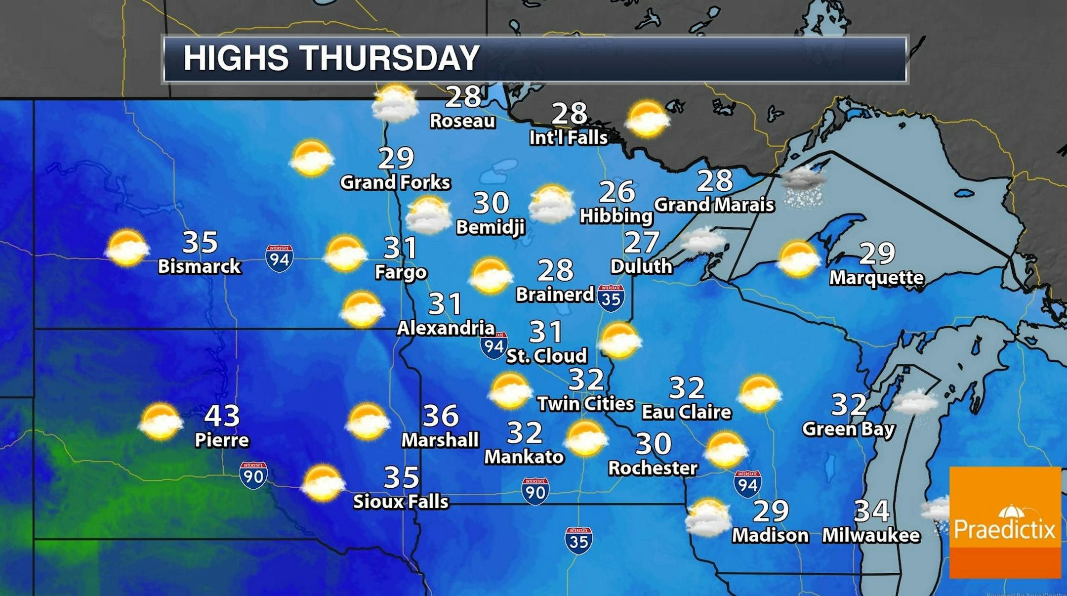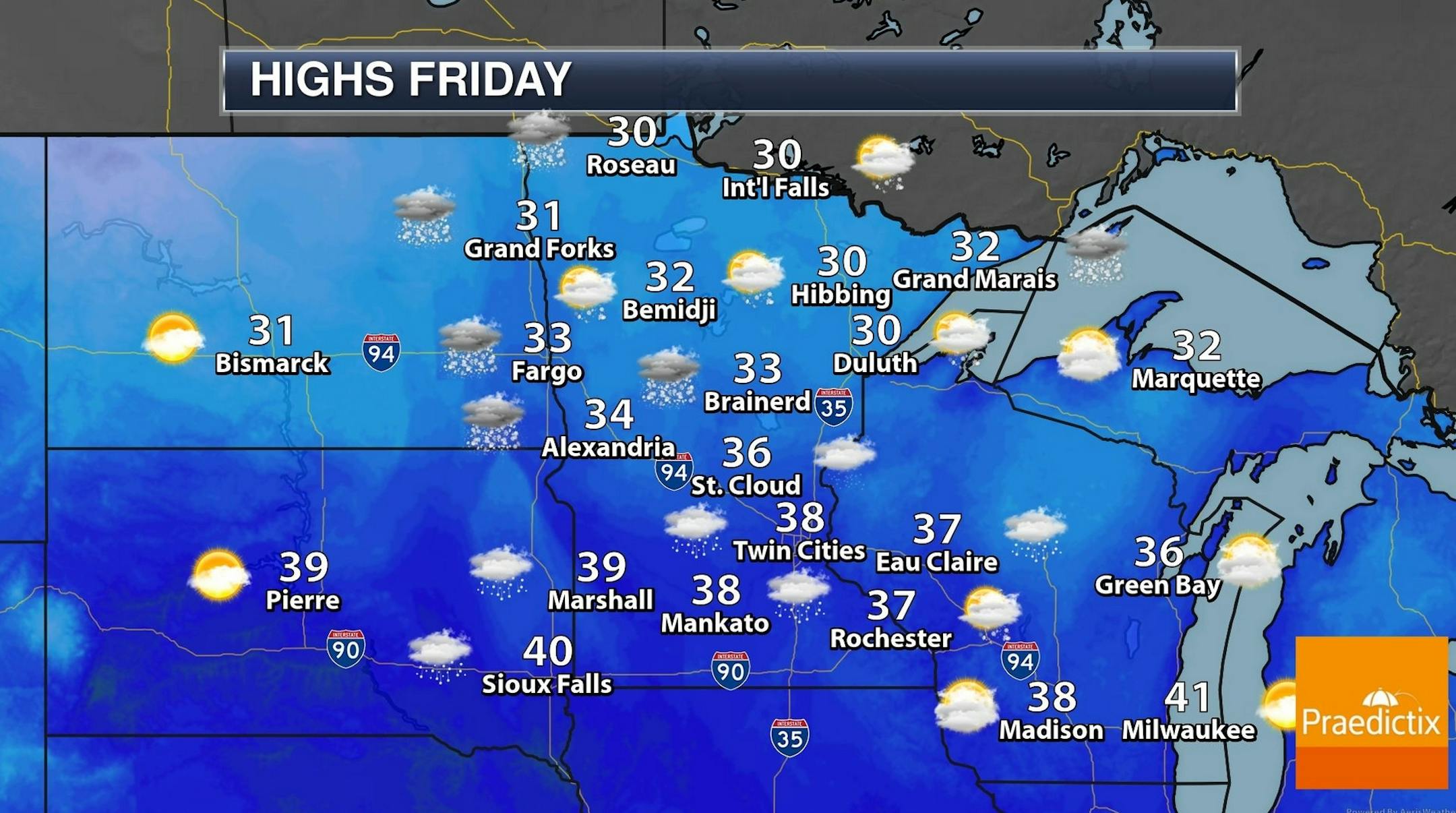 Few Snow Showers Late Friday? Another anemic clipper pushes a band of snow showers across the state late Friday, possibly mixed with a little rain.