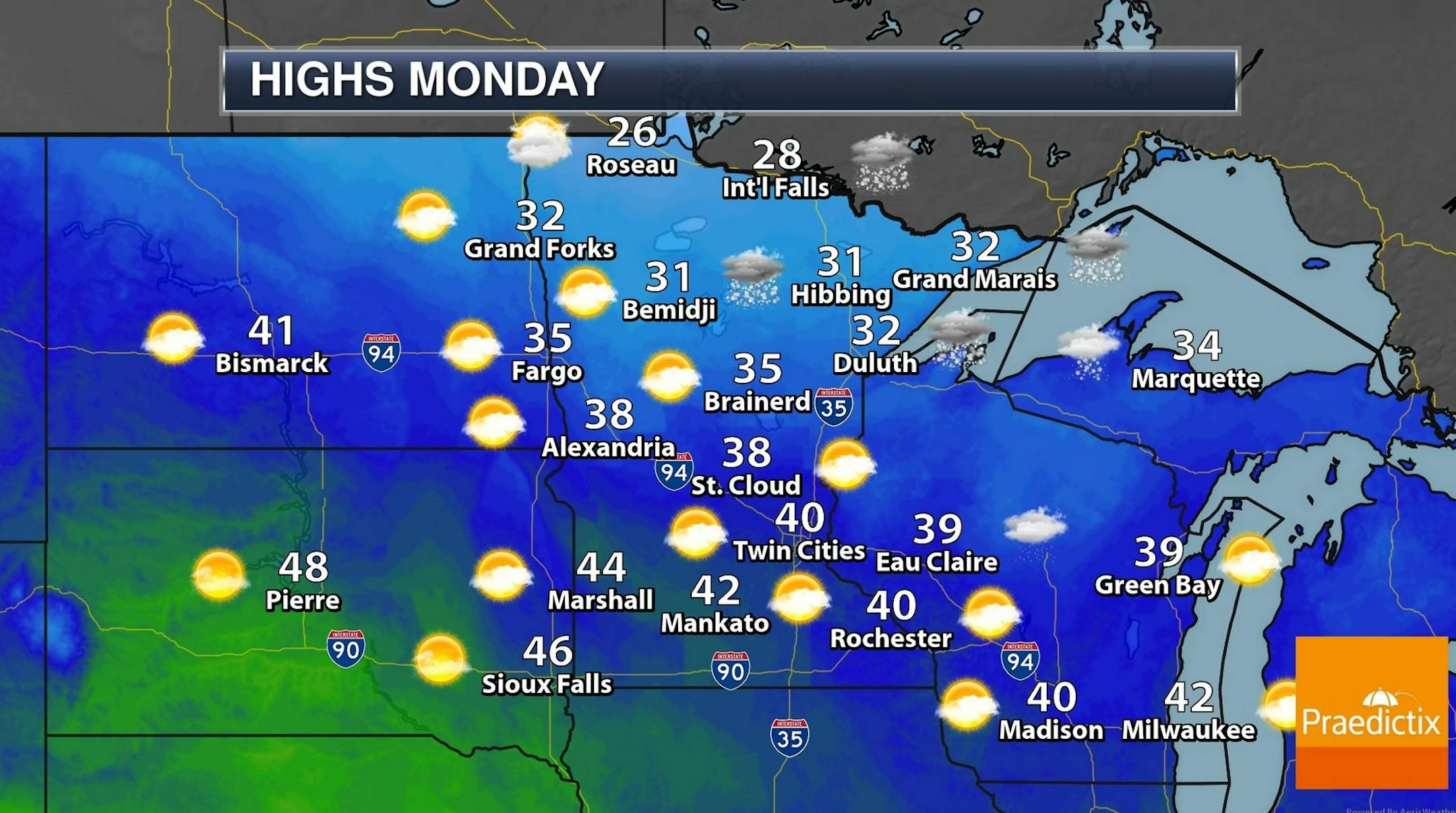 Temperatures Trend Above Average Into Tuesday. Quiet, drama-free weather spills into early next week with daytime highs anywhere from 5-15F above average the next 6 days. Amazing.