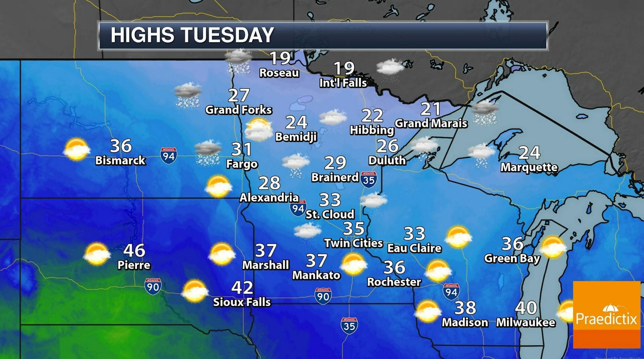 December temperatures in the Twin Cities are running 8F warmer than usual, but at some point the balloon will pop and a cold, North Woods reality will set in. Models show sharply colder air just in time for Christmas; daytime highs late next week may hold in the teens. The approach of this (brief) pop of Nanook air may set off a period of accumulating snow late Tuesday, especially south of MSP, so a white Christmas isn't entirely out of the question yet.