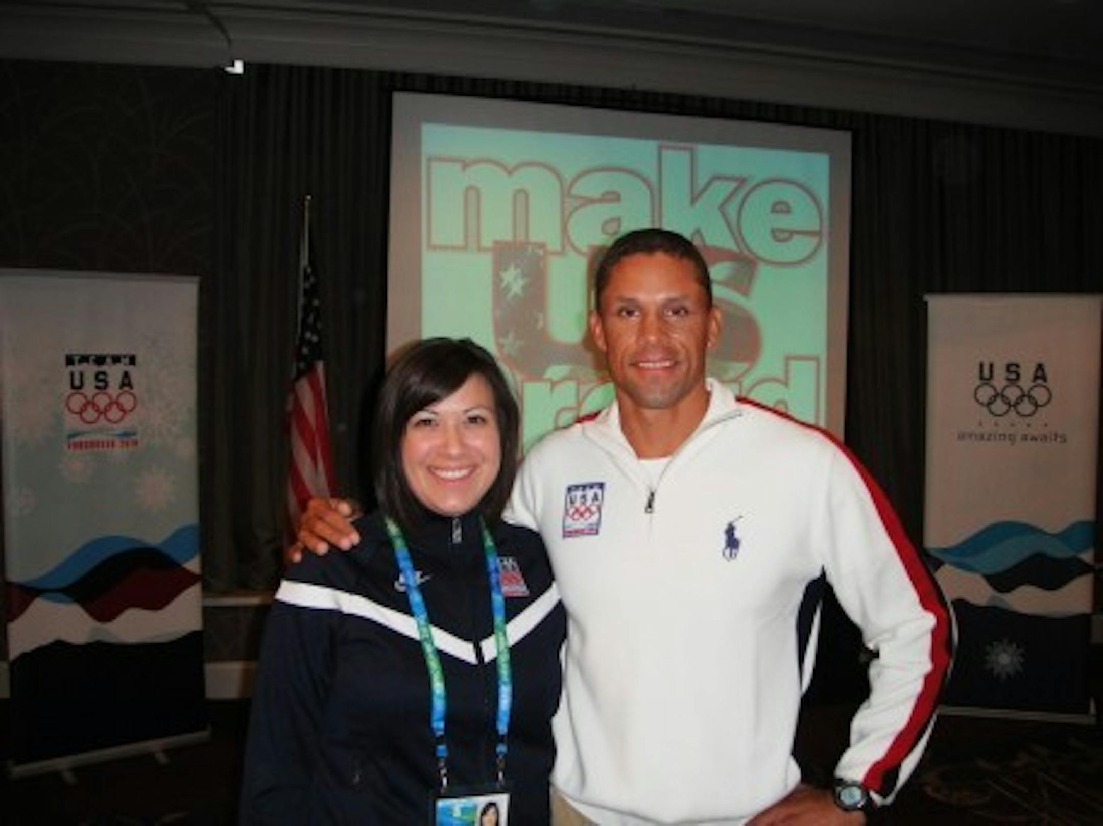 After breakfast at the hotel our two curling teams and some of the speed skaters (no Apollo was not there, I would totally tell you) had an 'orientation to the Olympic Village' type meeting with some USOC staff and 2 Olympic athlete ambassadors. One of the ambassadors was Dan O'Brien, a 2006 Olympic Gold medalist in the decathlon. HELLO! I used to watch Dan in the Olympics and even had several of his pictures up in my bedroom (this was in 1992 and I was a sophomore in high school-so don't make fun of me:). So when he cruised in to the meeting I literally dropped my jaw! I was mumbling to my teammates about how much I loved him when I was in high school and yada, yada, yada! They were laughing because I rarely am speechless. Which I was … for a brief moment;) And then I took my picture with him! Ha!