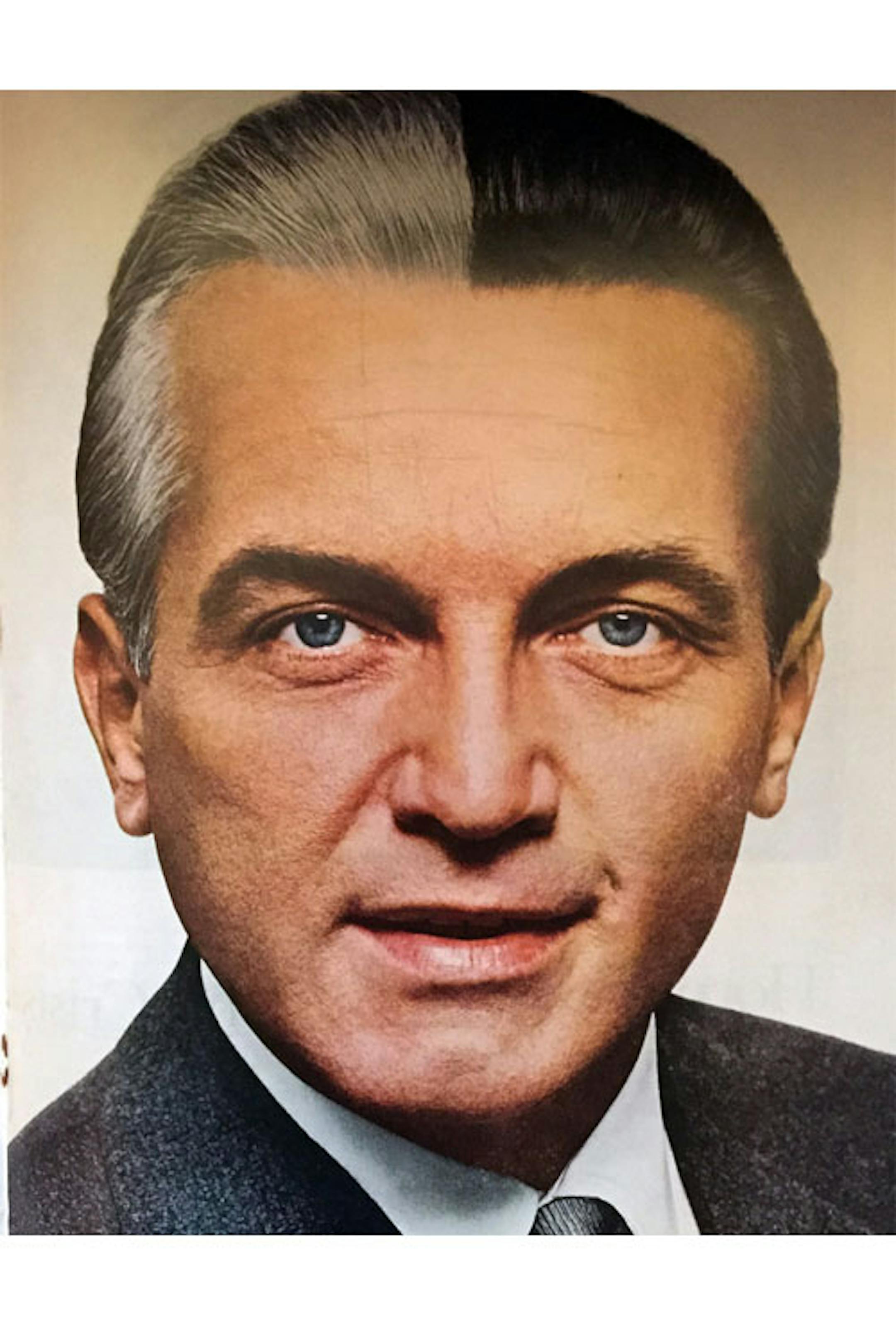 Looking through an early 60s LOOK magazine - the Hunt's Catsup to Life's Heinz - I came across an ad for men's hair dye. The copy said that grey hair made you look old, and not so virile, and not as ripe for Success as dark hair. Here's the picture they used.