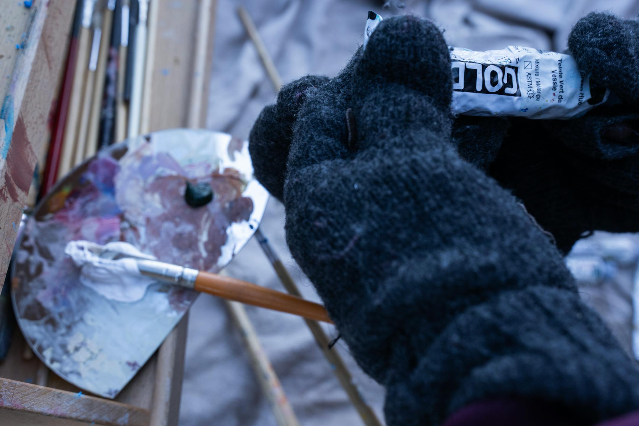 Artist Noval Noir stood outside in single-digit temperatures at Alex Pretti’s memorial site, painting his portrait. She dabbed pink paint onto her semi-frozen brush. A thin layer of ice formed in her paint water.