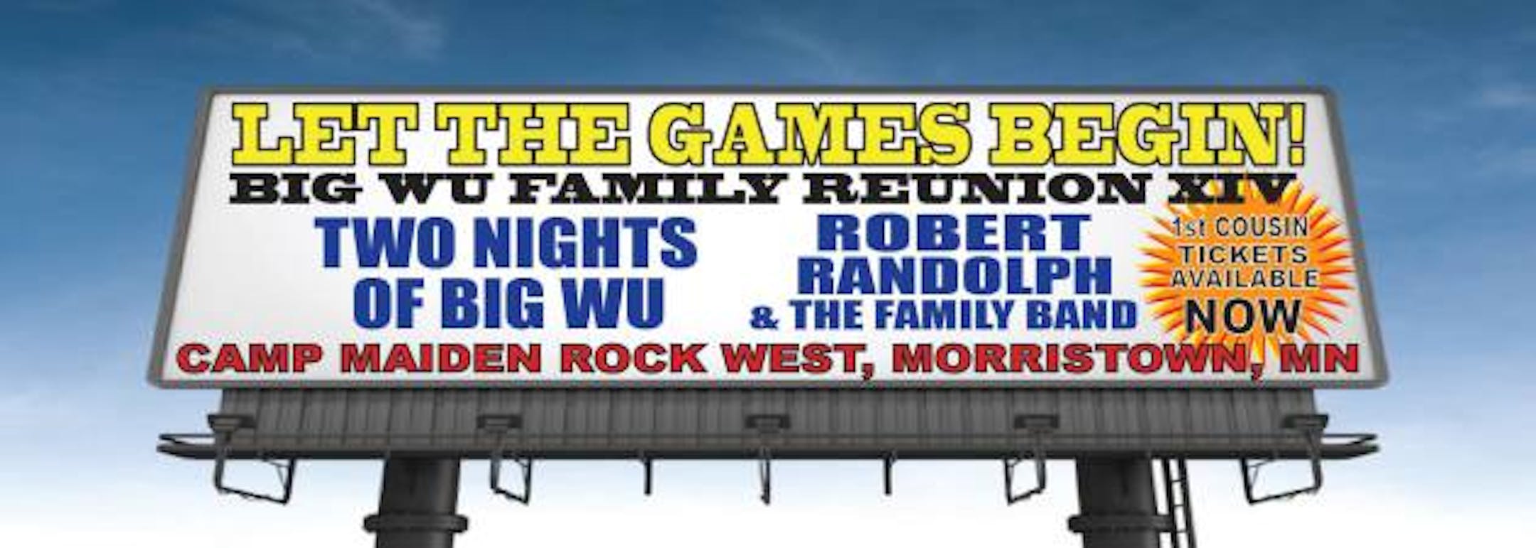 That's not the only big outdoor concert news today, either. Minnesota's own jammy kings the Big Wu unveiled the dates for their 14th annual Family Reunion, Aug. 7-9, along with one big name that will join them there, gospelized funk-rock stalwarts Robert Randolph & the Family Band. The bash is once again happening at Camp Maiden Rock in Morristown (less than an hour south of Minneapolis). Click here for $50 "first cousin" tickets.