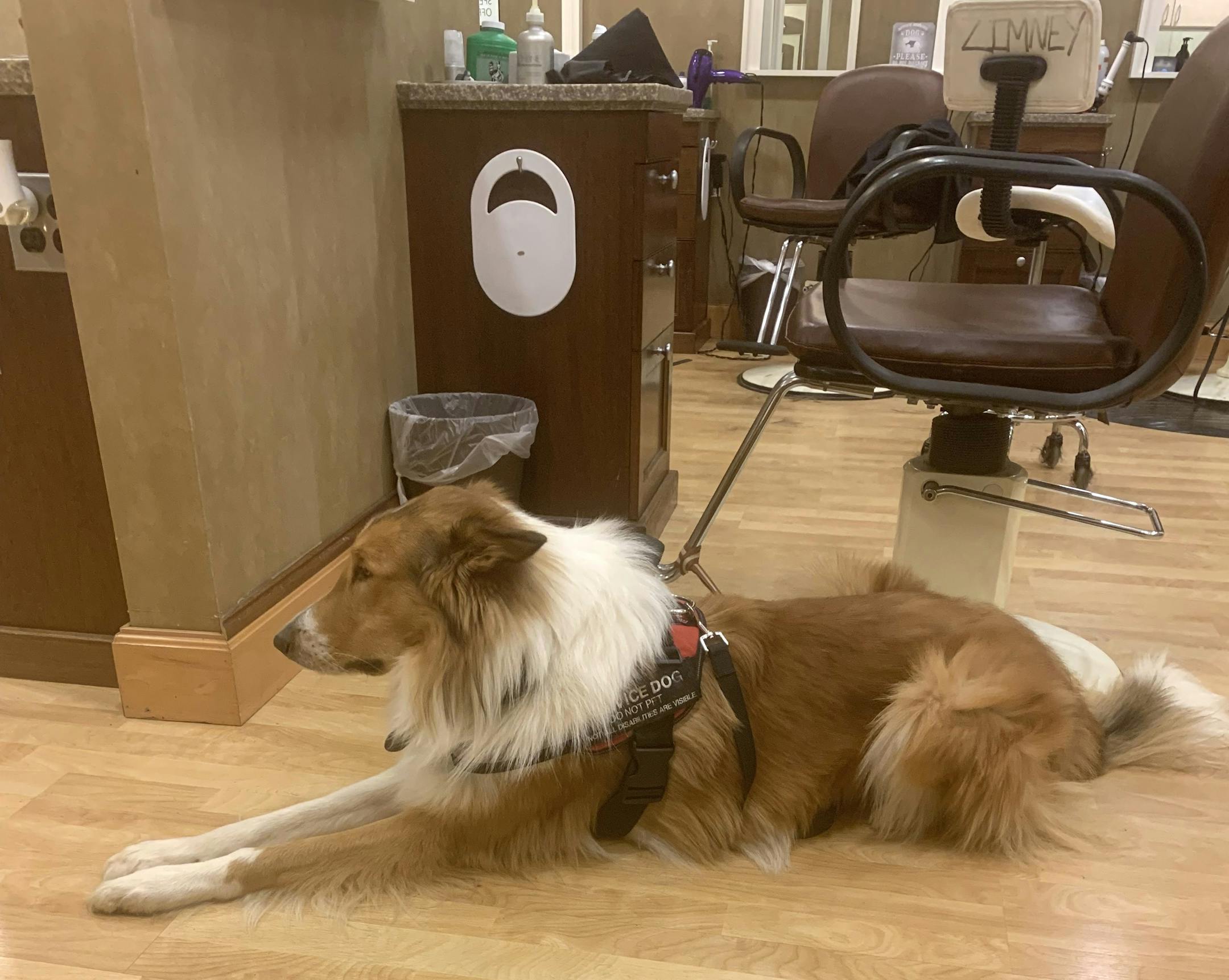Her accommodations included access to a water bottle and chair at her work station, as well as her service dog, Bingo, who was trained to remind Zimney to take her medications, retrieve medicine or water and respond to seizures.