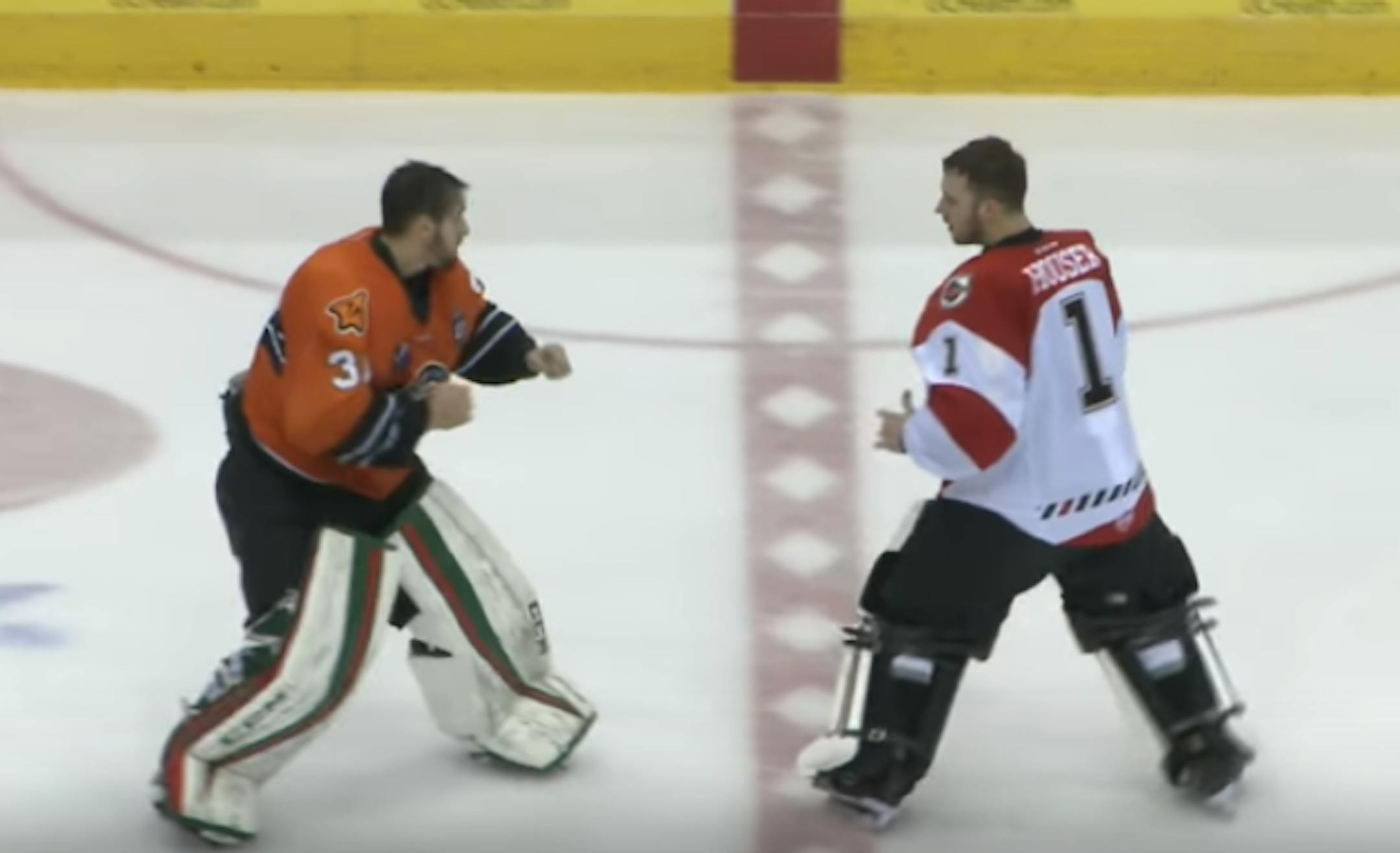 Vay, the Quad City goalie who enjoys practicing mixed martial arts in his spare time, fought Cincinnati goaltender Michael Houser at center ice on Wednesday night. The two goalies circled each other before Vay landed his first punch with a left hook into Houser's face.