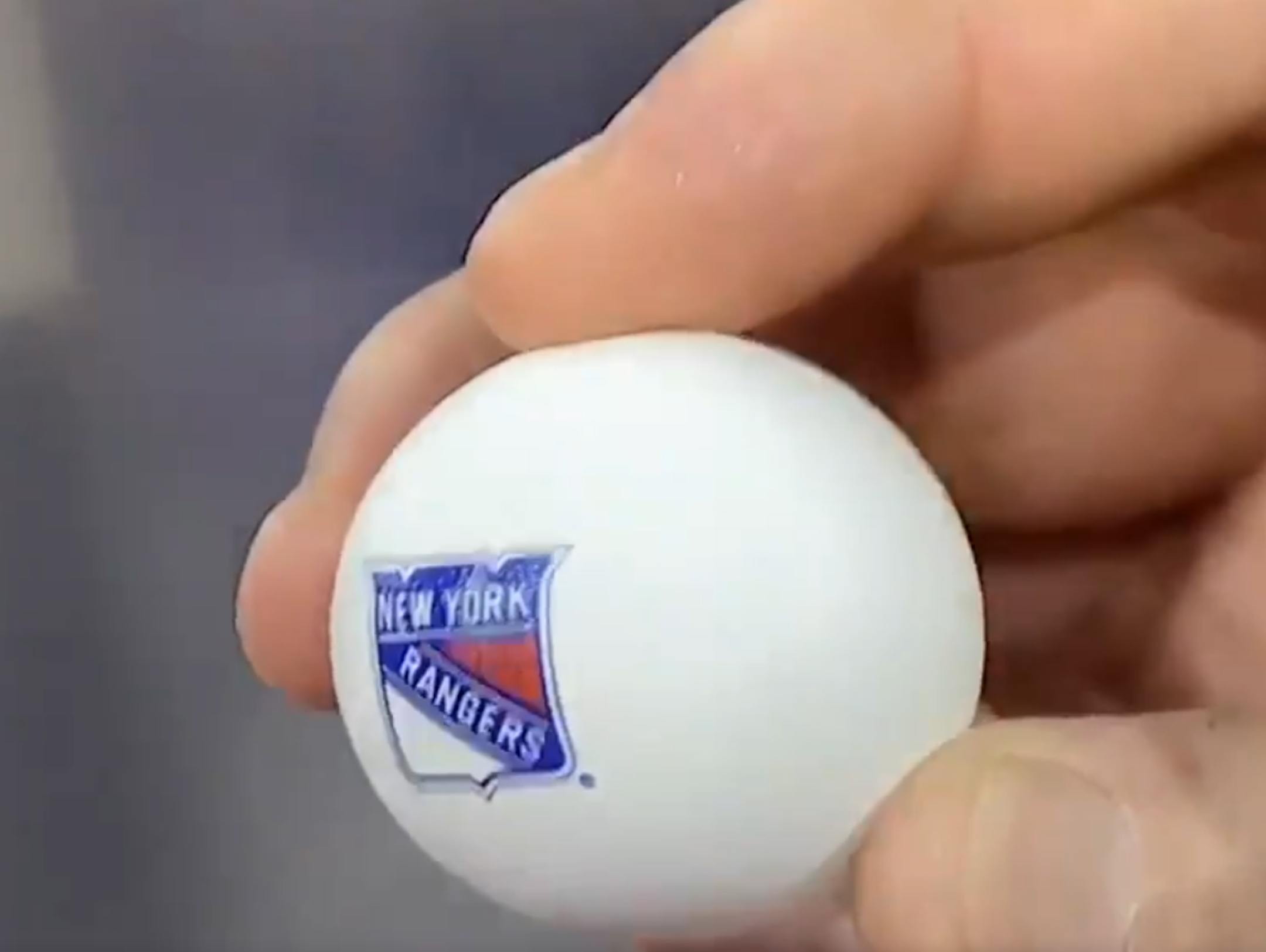 First, the poor guy placing the balls in the hopper accidentally let go of the Rangers ball too early before cameras could focus on the logo. He had to reach back in and grab it before re-dropping it.
