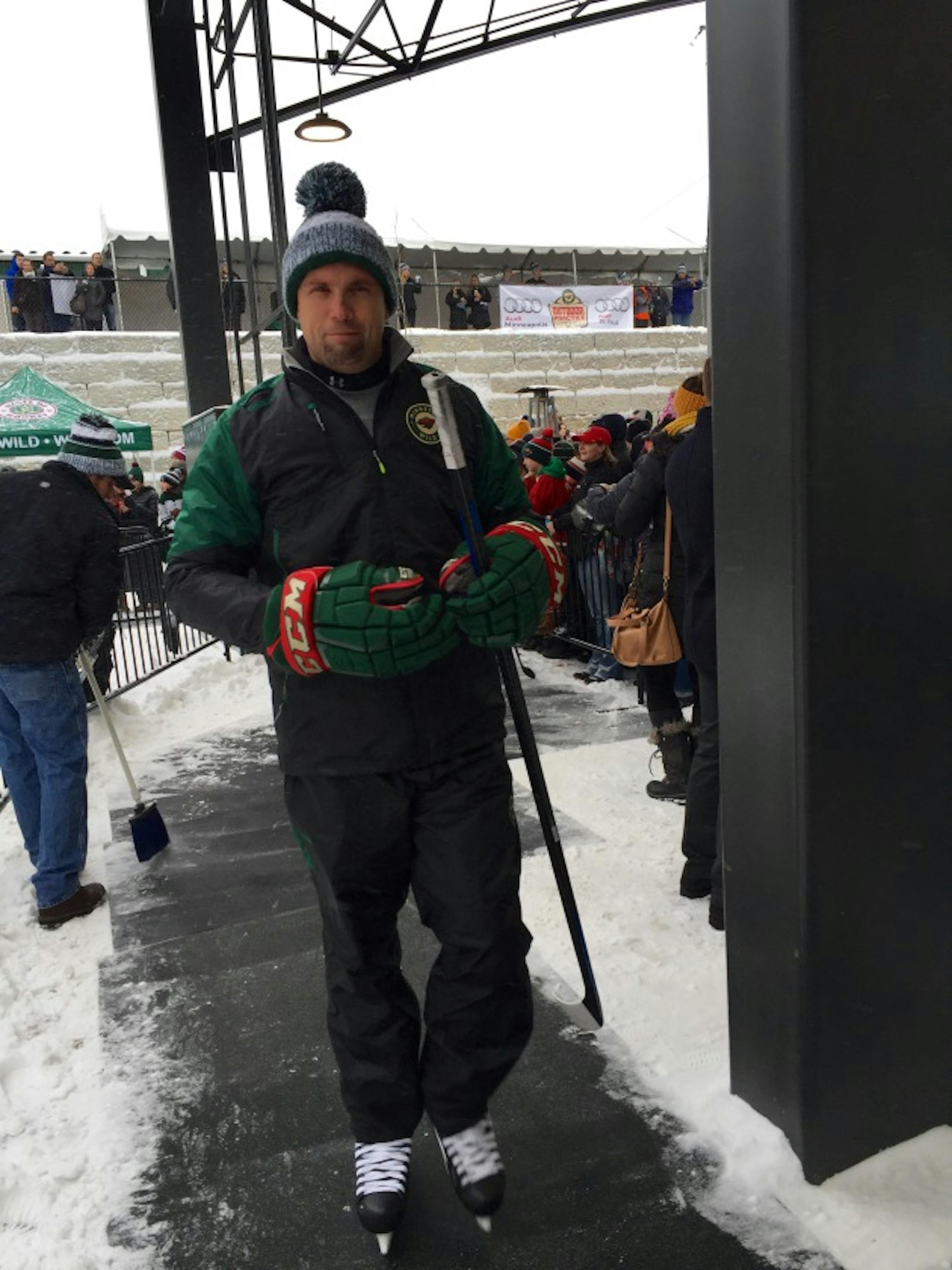"Very similar [in Finland]," Mikko Koivu said of the outdoor practice. "That's all we did as a kid. That reminds you of all the fun times growing up and playing with your friends and just having fun on the ice. To me, that's what outdoor hockey is all about."