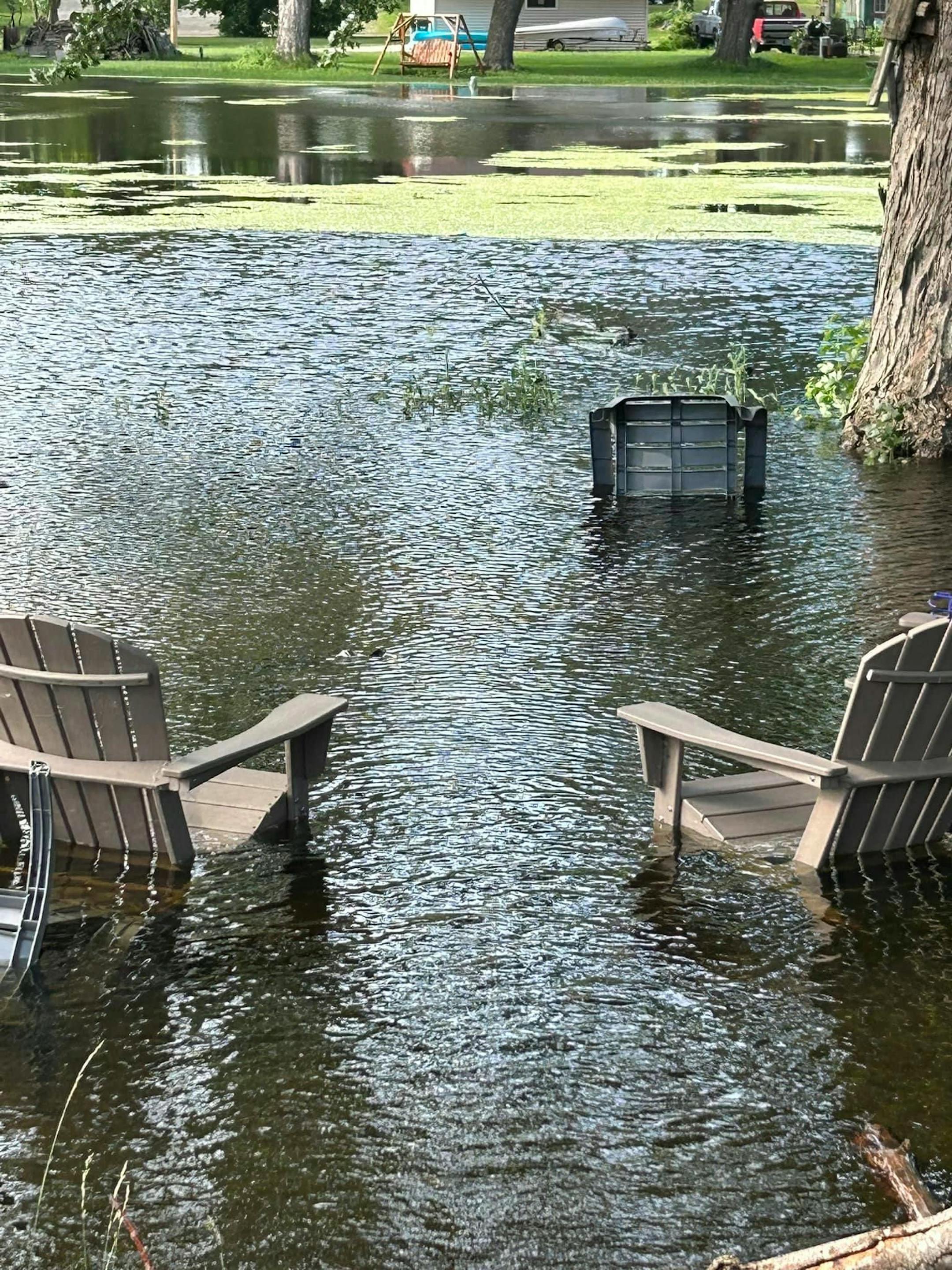 Robin McMullen looked out the window of her Waterville, Minn., cabin Thursday, watching helplessly as water from the storms earlier this week that pushed lakes and rivers over their banks lapped at her front door.