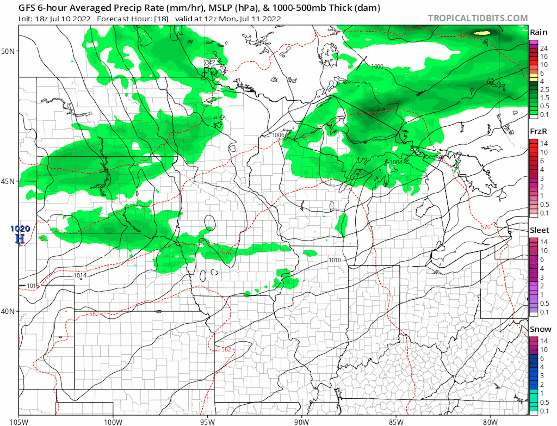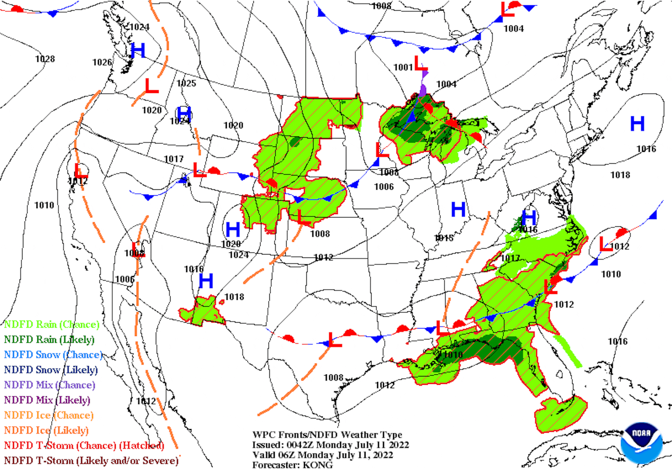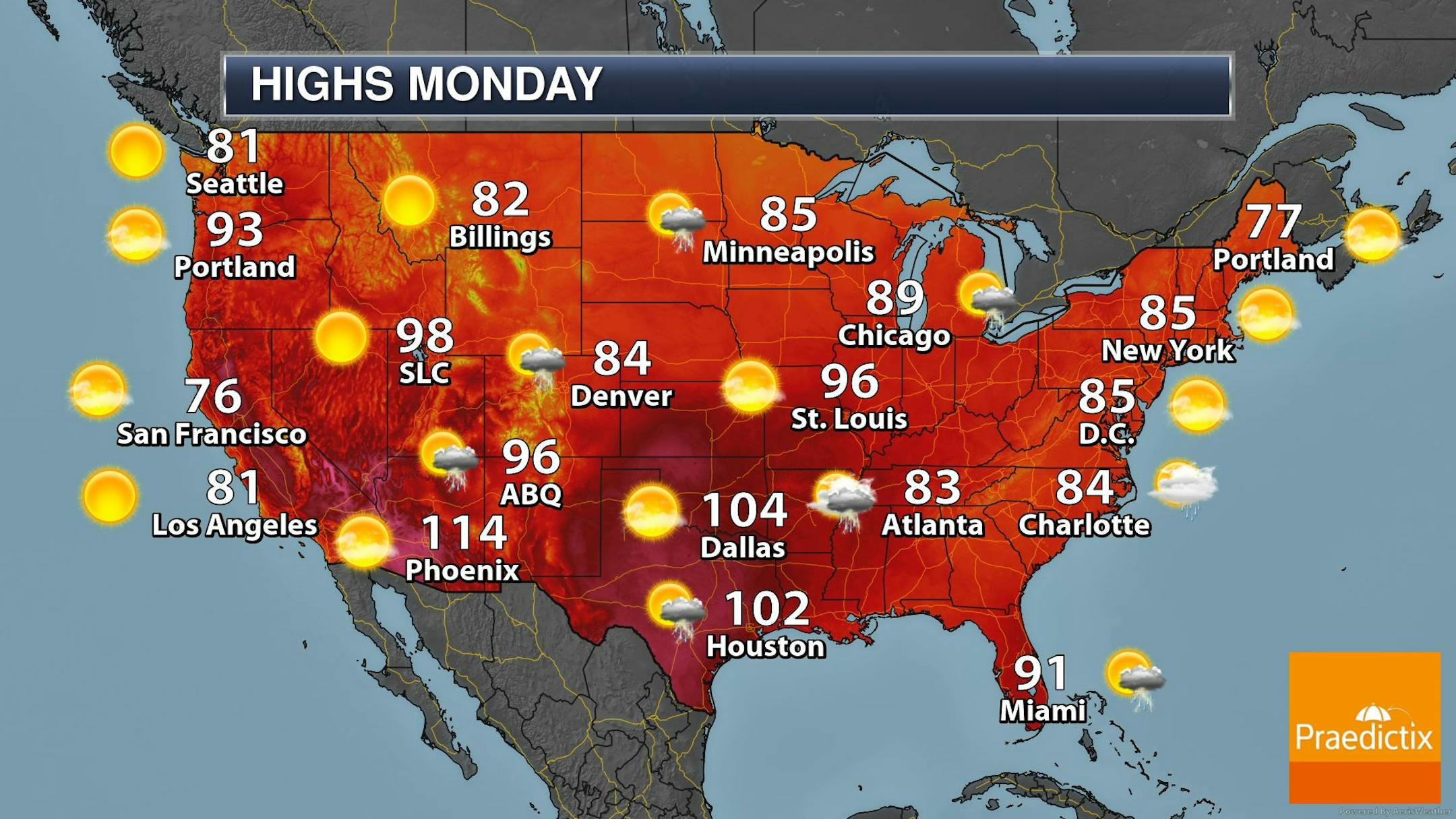 The weather outlook for Monday won't be as hot or as humid as it was on Sunday, but there will be isolated showers and storms across parts of the state through the day. Temps will warm into the 70s and 80s, which will be closer to if not slightly below average for mid July.