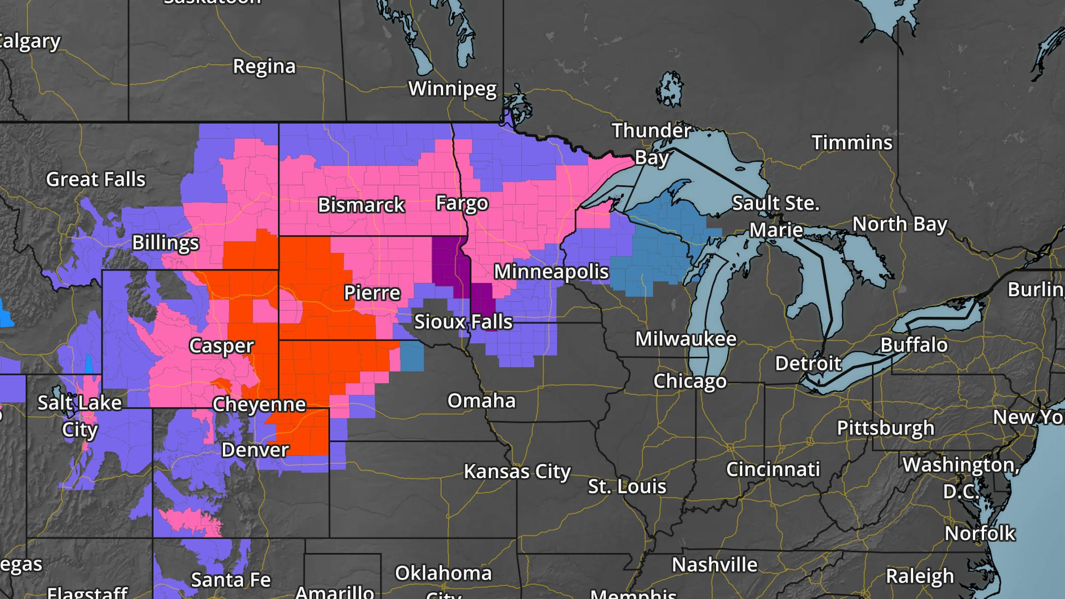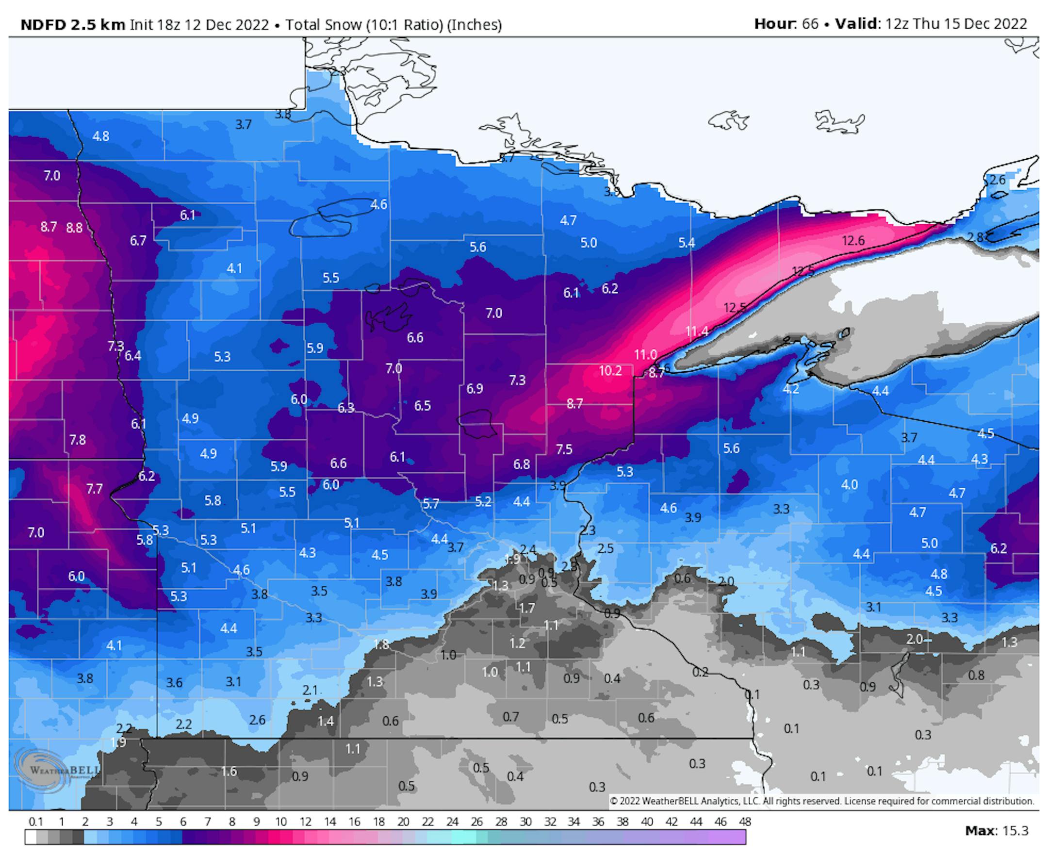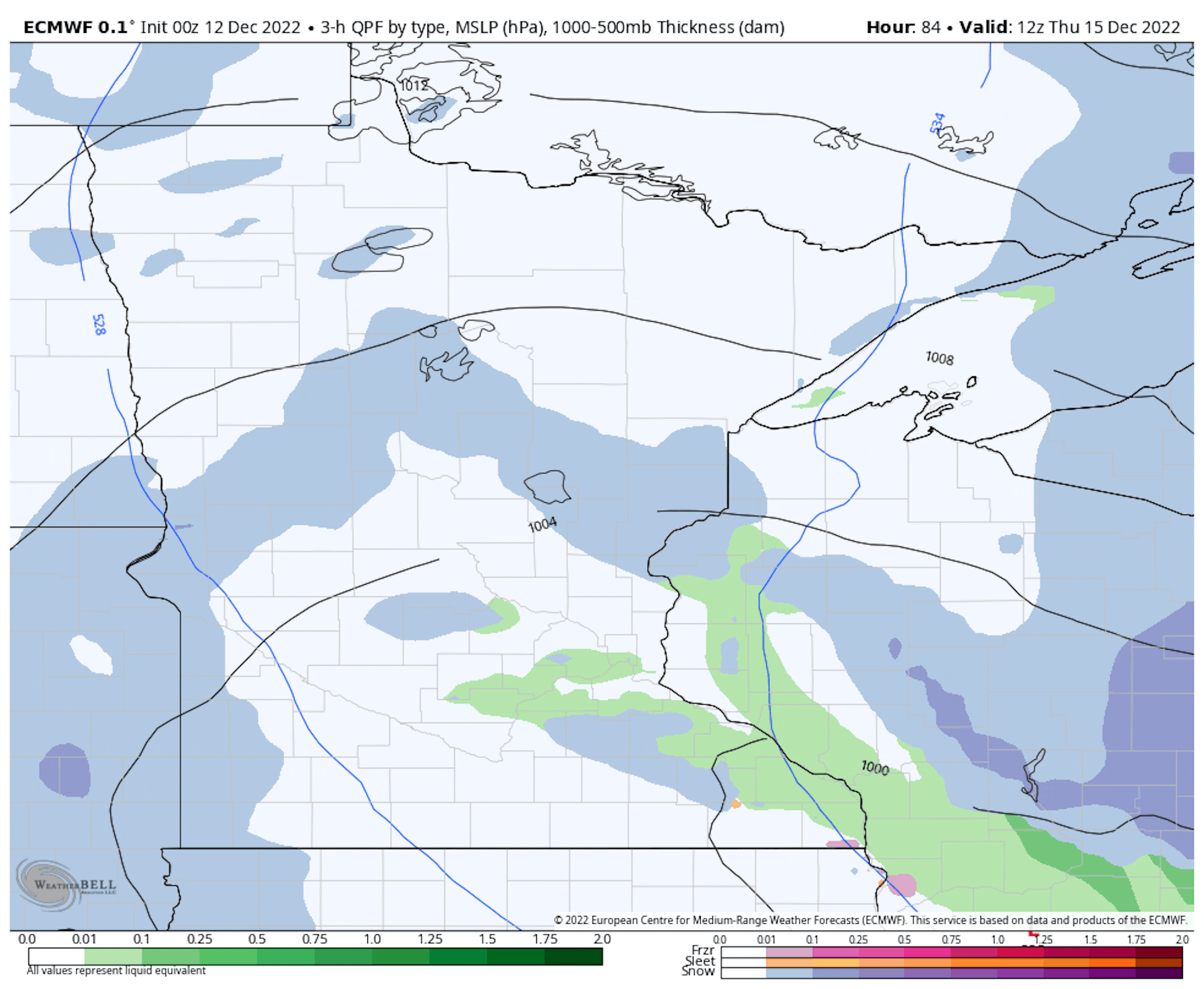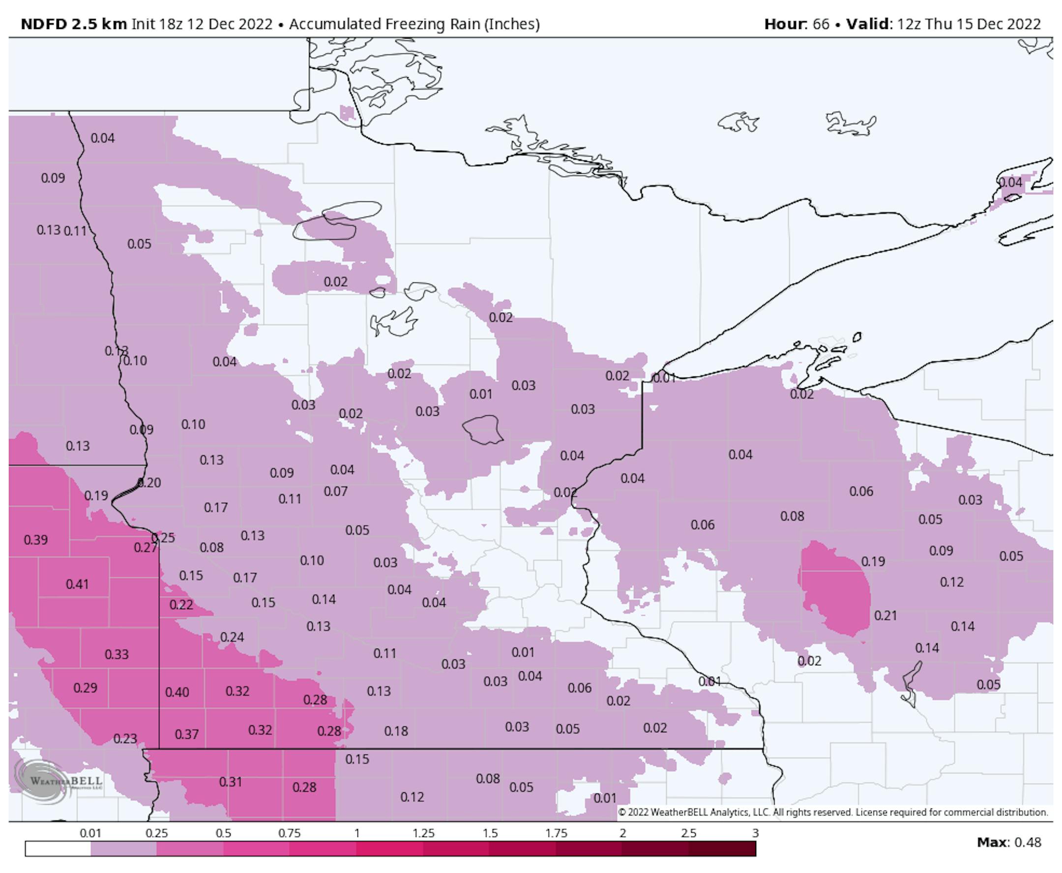 Here's a broken down chart for timing and precipitation types for select cities across the region. For the Twin Cities, there could be wintry mixed precipitation (heavy at times) through much of the midday/afternoon times frame. Precipitation could eventually switch to all rain at some point late Tuesday into Wednesday before a lull in the precipitation during the day Wednesday. Meanwhile, folks in western Minnesota could see a brief period of freezing rain before snow arrives. Areas of heavier snowfall maybe possible across central MN later Tuesday into Tuesday Night, before tapering into AM Wednesday.