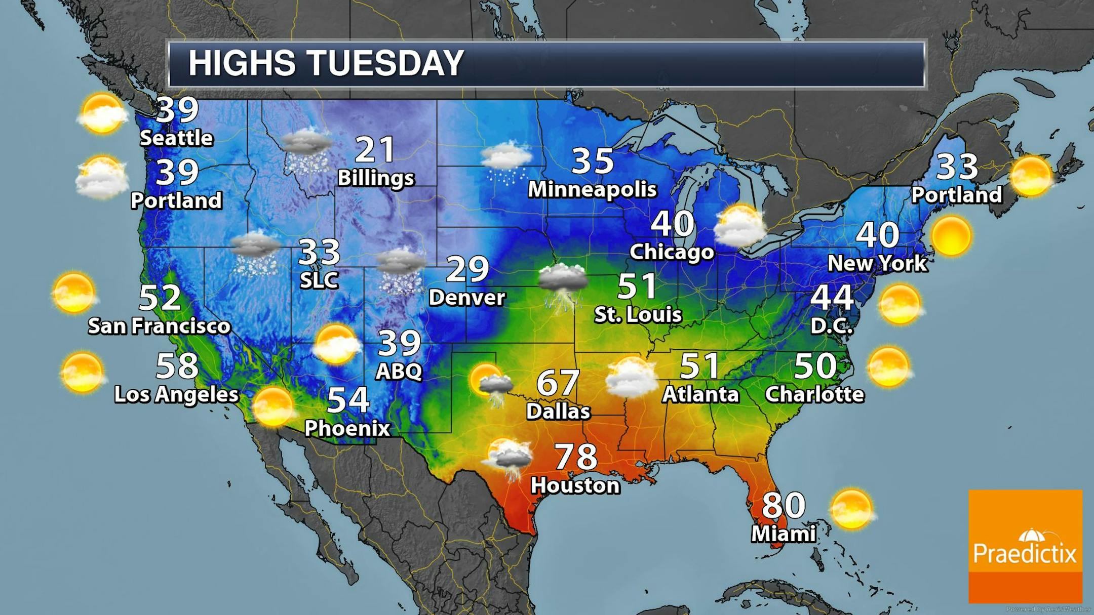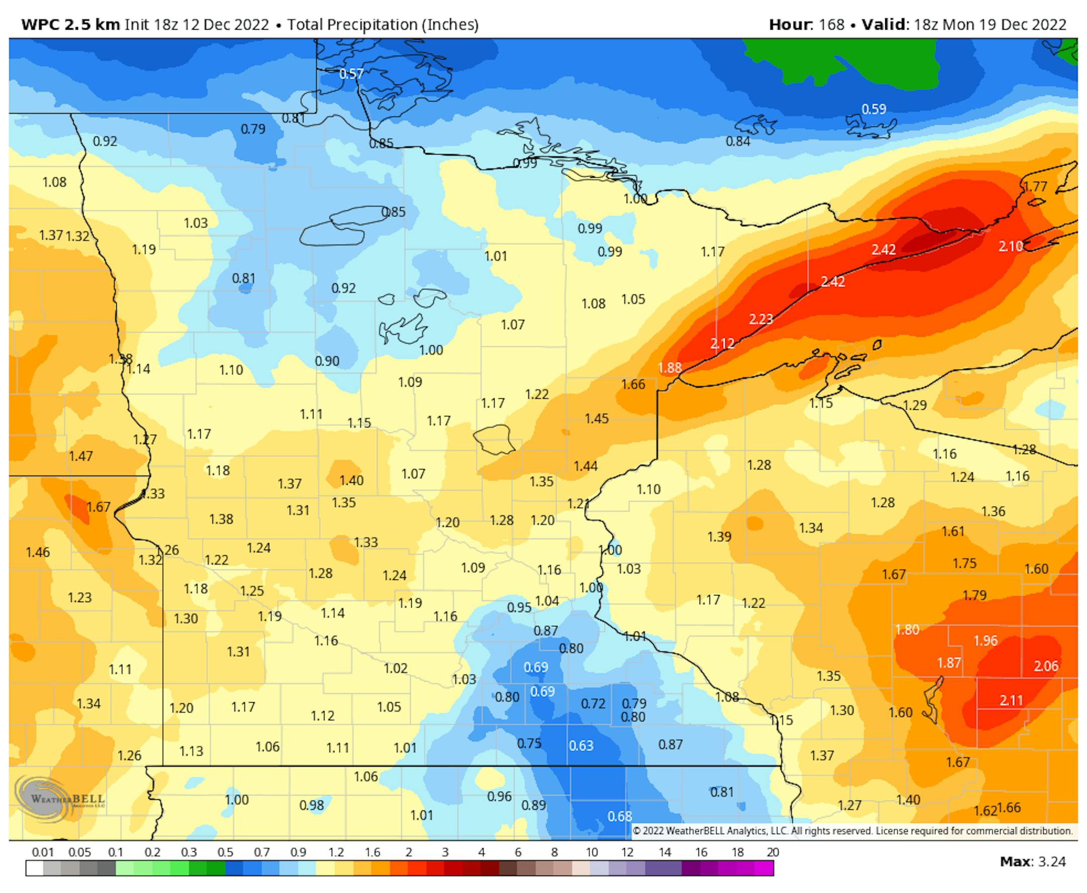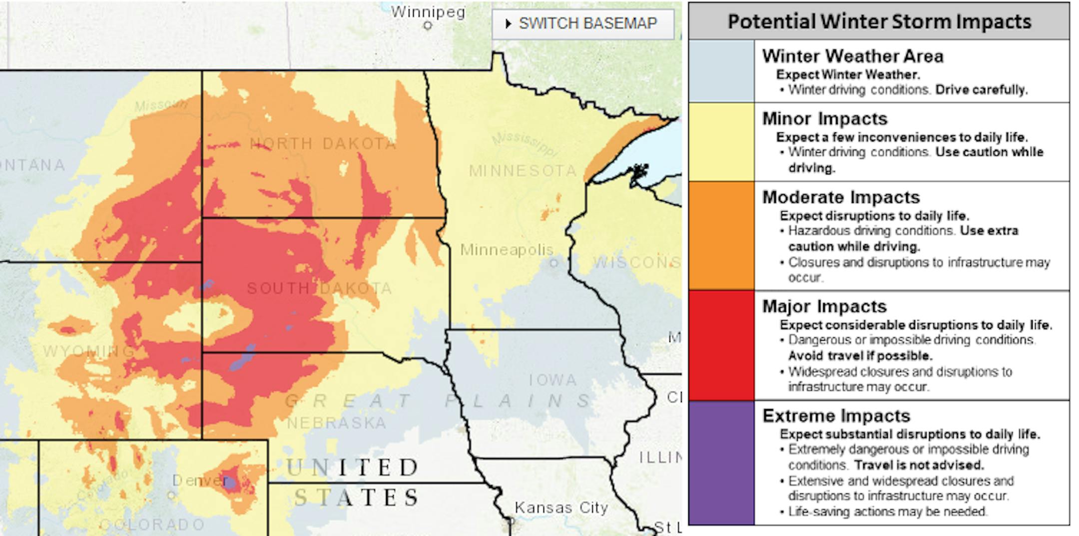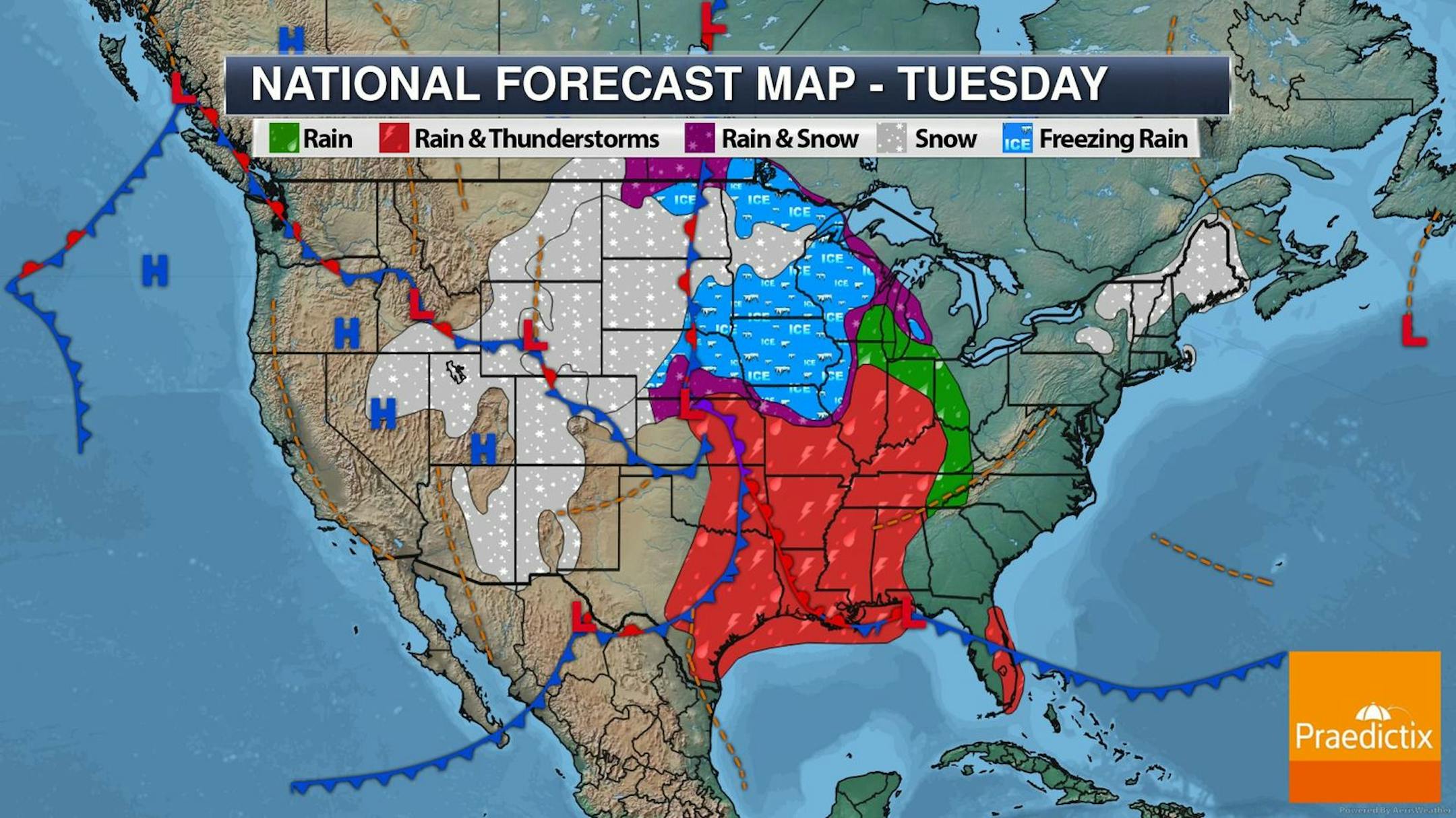 Here's a broken down chart for timing and precipitation types for select cities across the region. For the Twin Cities, there could be wintry mixed precipitation (heavy at times) through much of the midday/afternoon times frame. Precipitation could eventually switch to all rain at some point late Tuesday into Wednesday before a lull in the precipitation during the day Wednesday. Meanwhile, folks in western Minnesota could see a brief period of freezing rain before snow arrives. Areas of heavier snowfall maybe possible across central MN later Tuesday into Tuesday Night, before tapering into AM Wednesday.