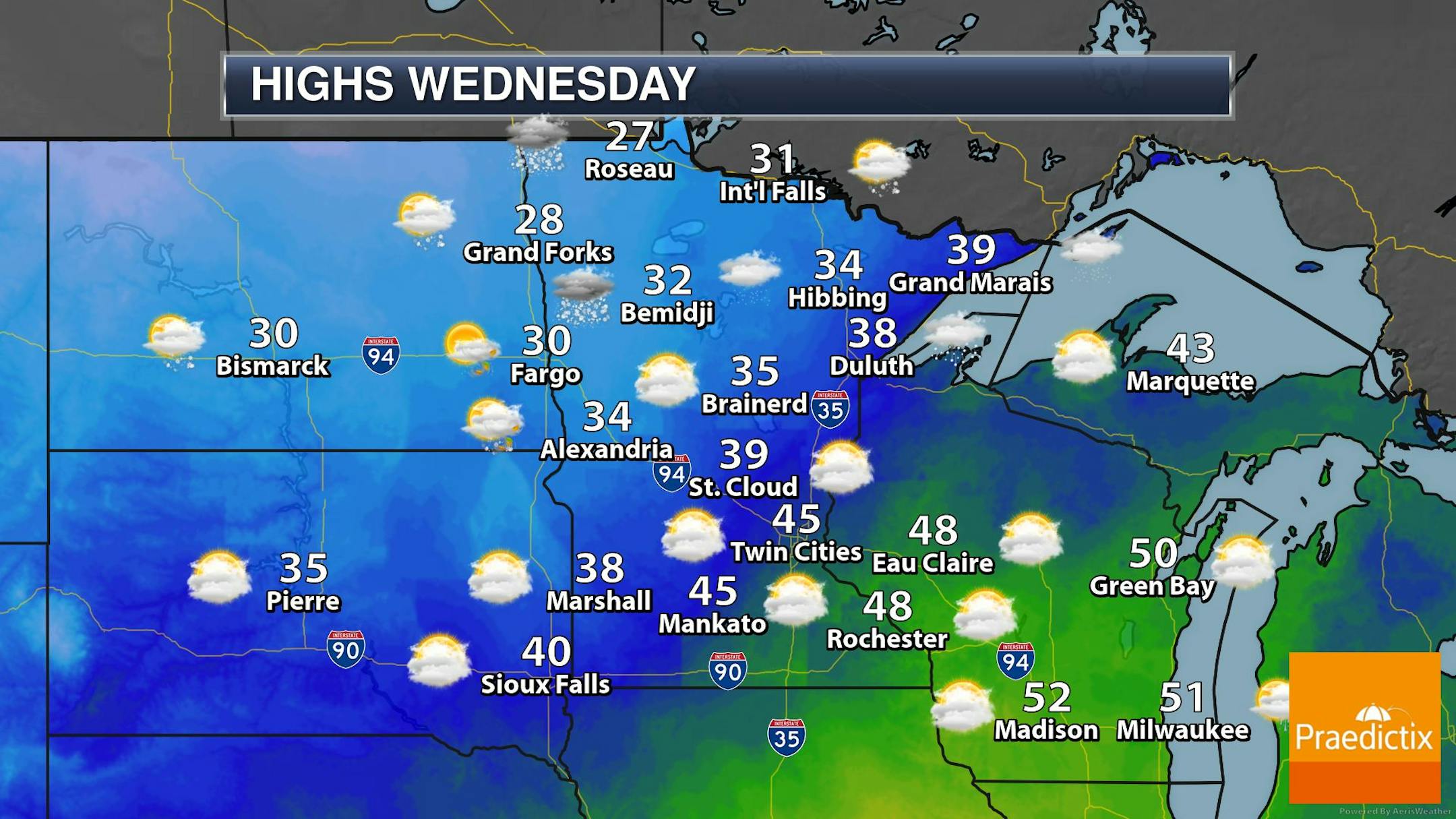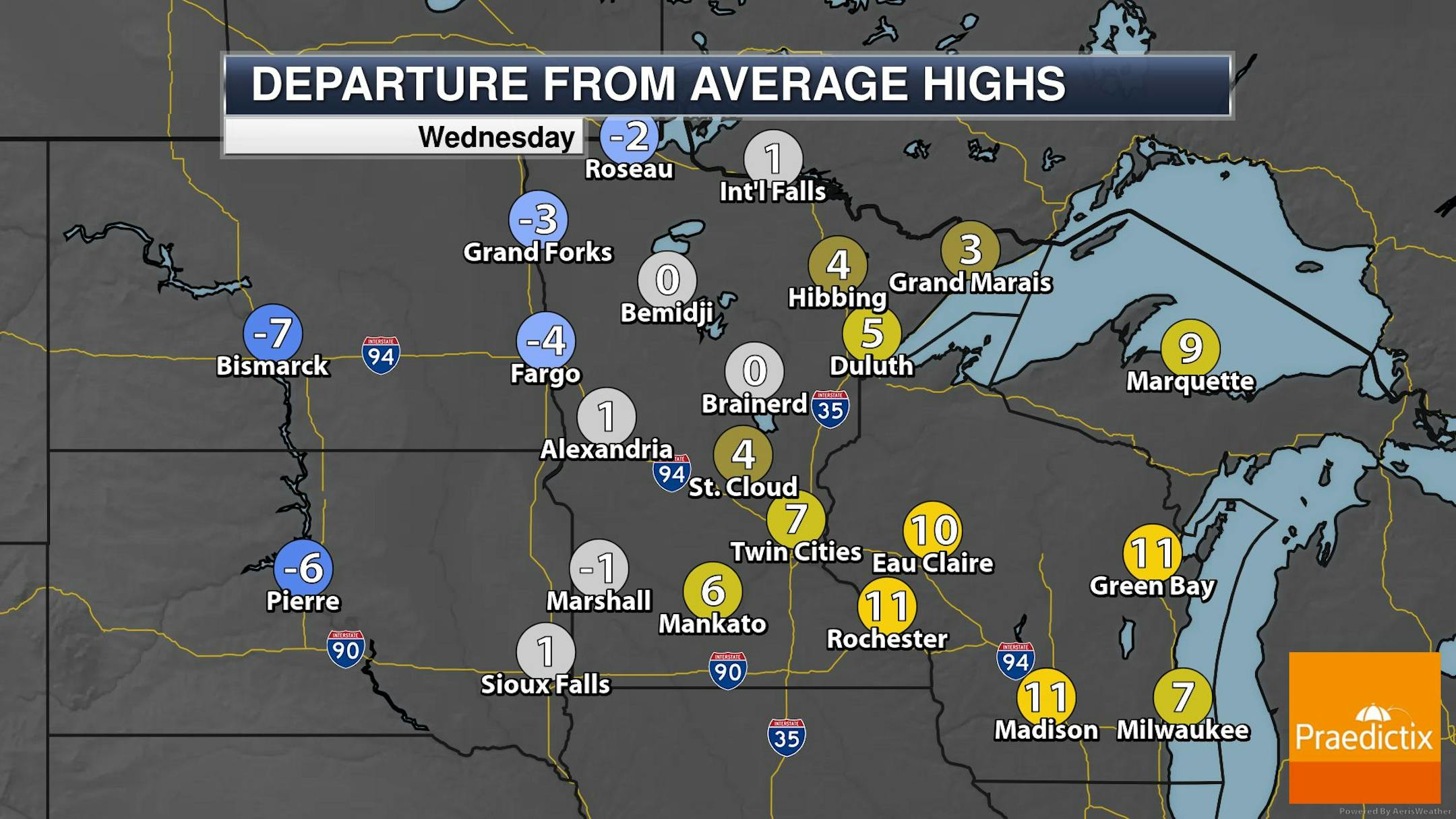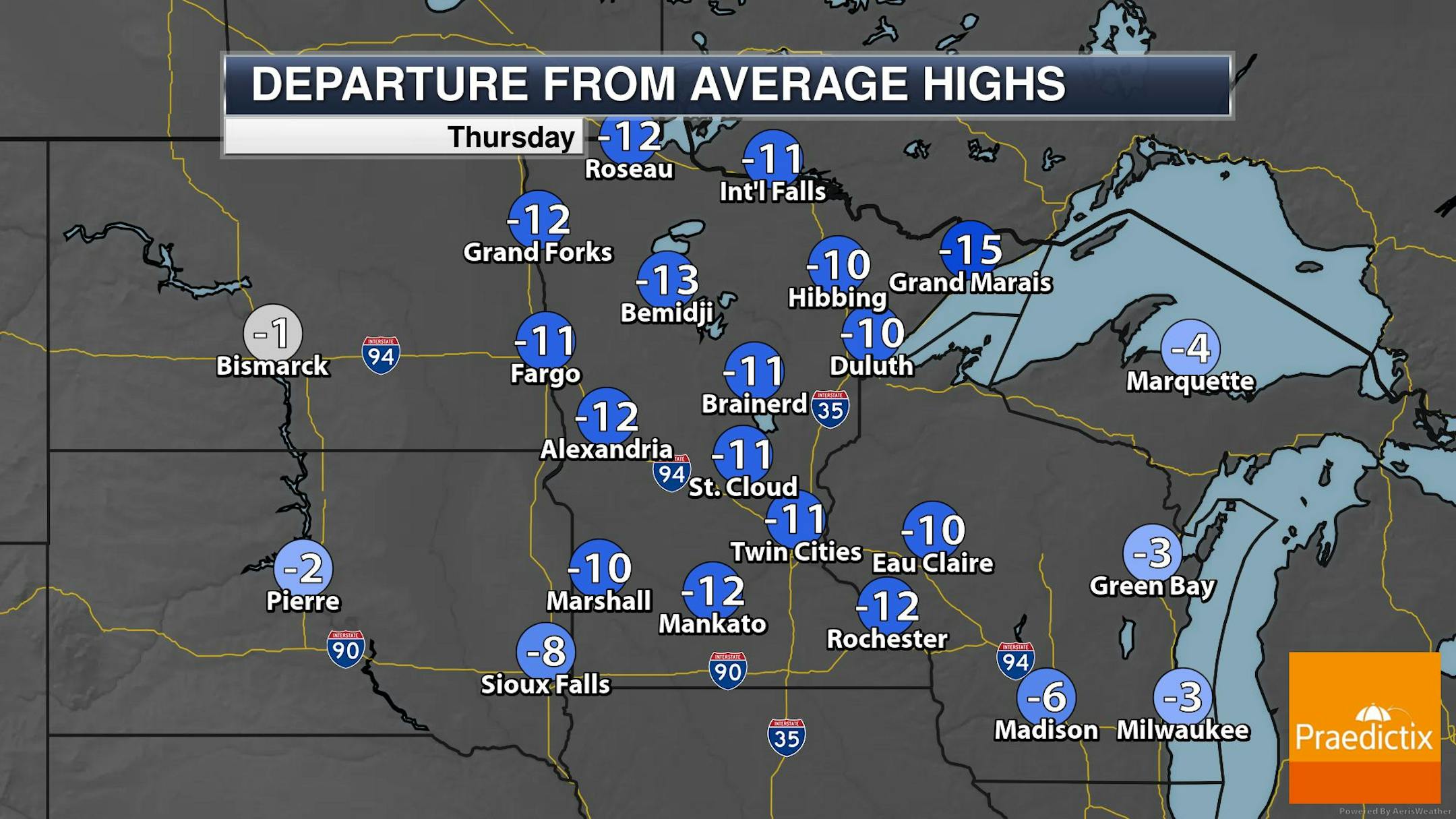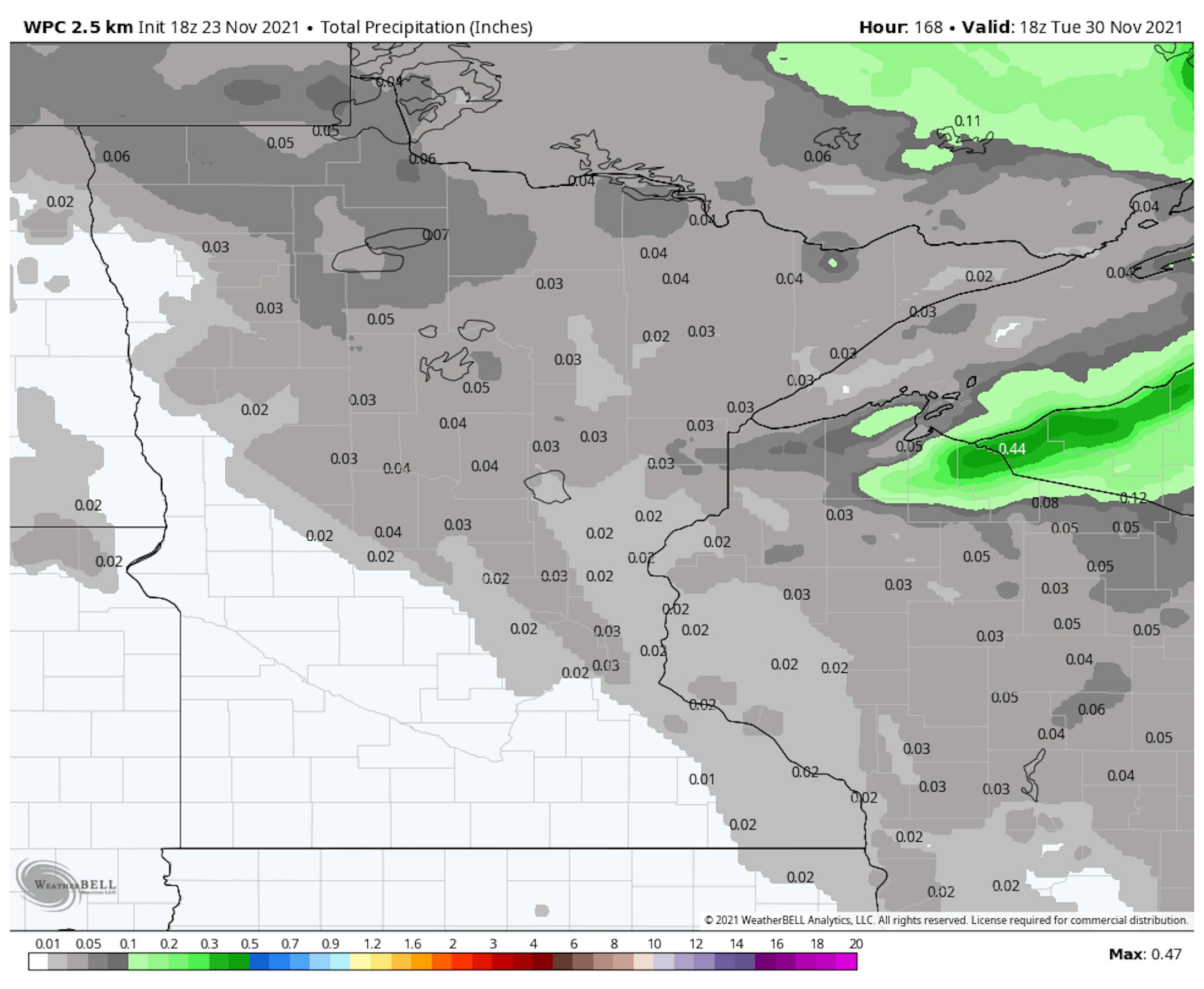 It'll be a cold Thanksgiving Day Thursday across the region with temps running nearly -10F to -15F below average. Breezy northwesterly winds will make it feel more like the teens and single digits for much of the day. Other than being cold, we don't have any major storm systems brewing anywhere in the Upper Midwest, so traveling should be fine and dandy.