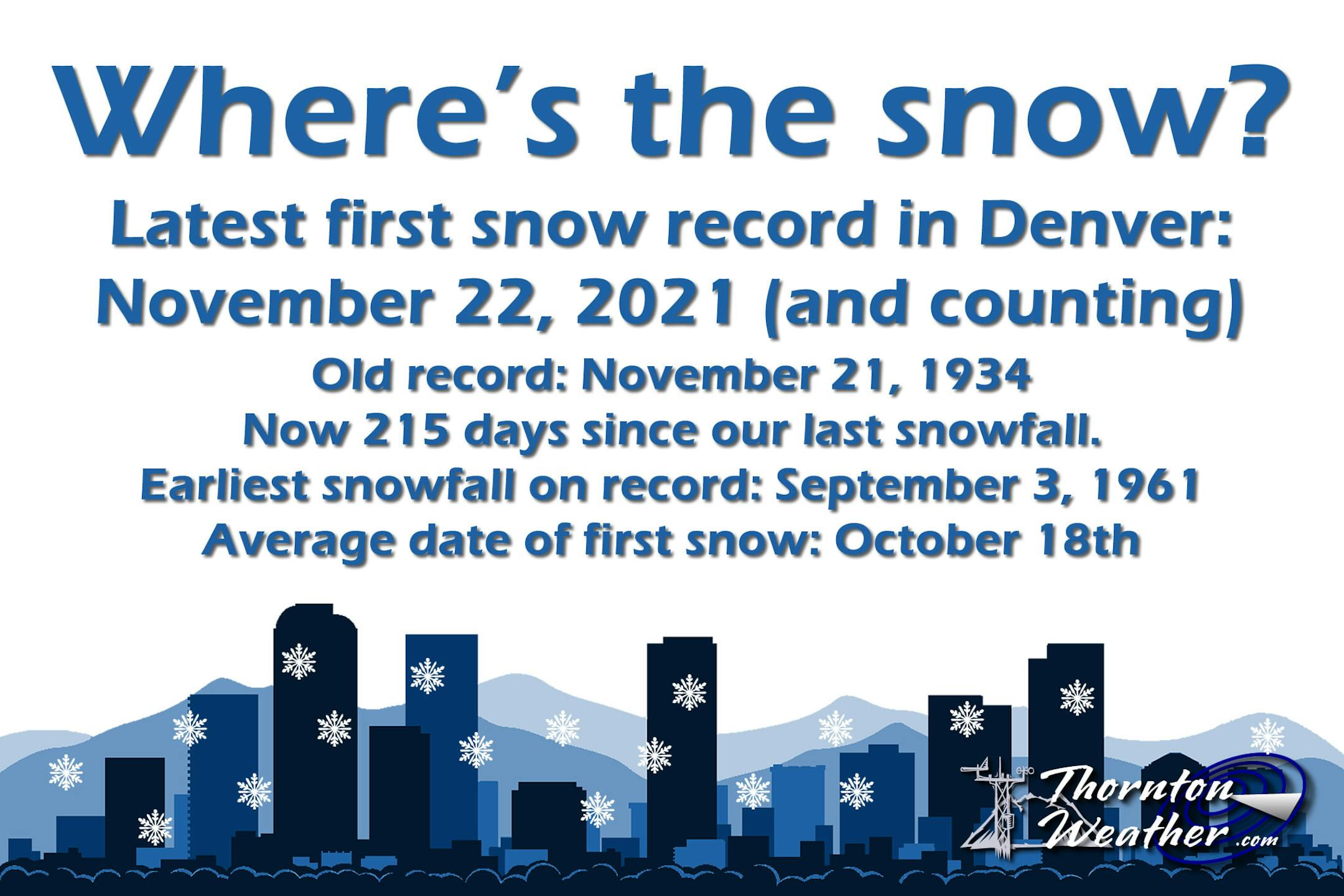 Interestingly, Denver, Colorado has not yet seen any measurable snow this season, which makes it a record for the latest first measurable snow on record! The old record was November 21, 1934.