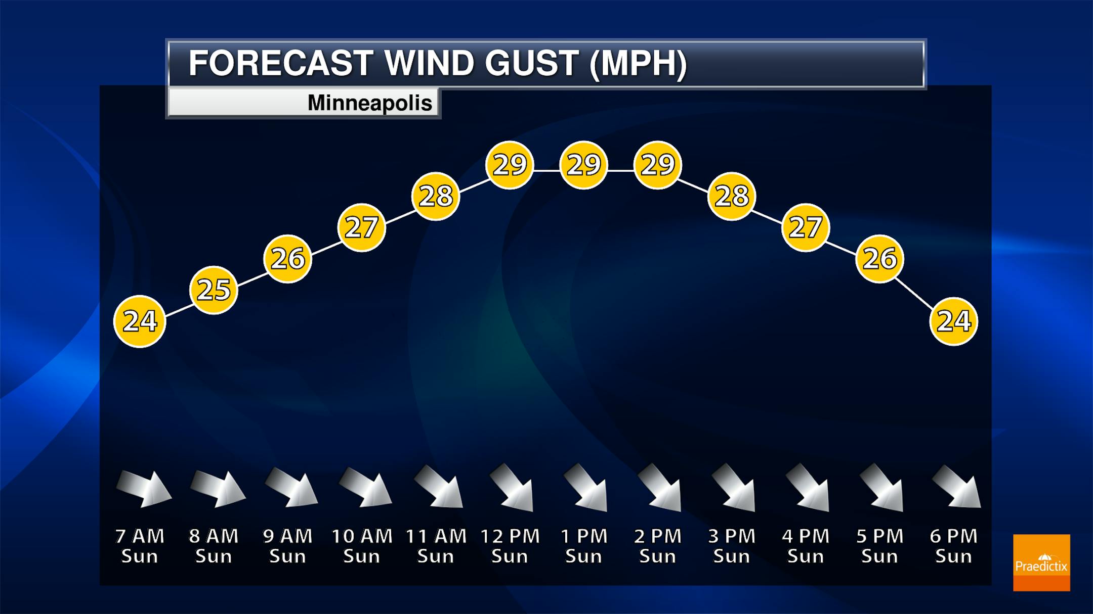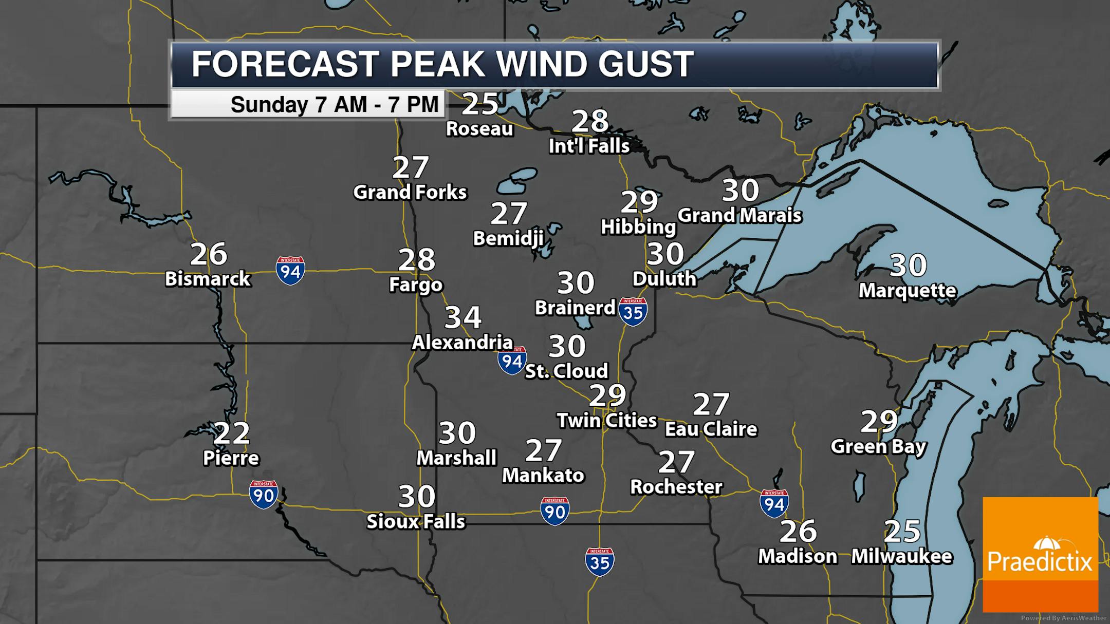 It will be a blustery day across the state, with strong northwest winds gusting up to 30 mph in some locations. The strongest winds in the metro are expected during the midday and afternoon hours.