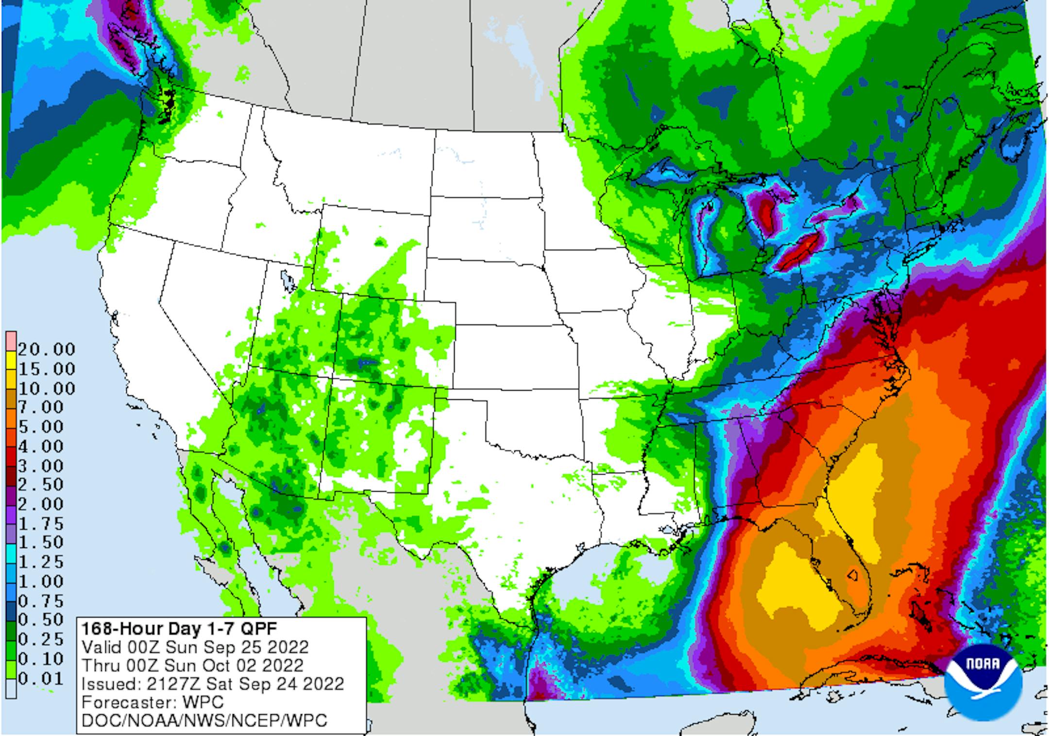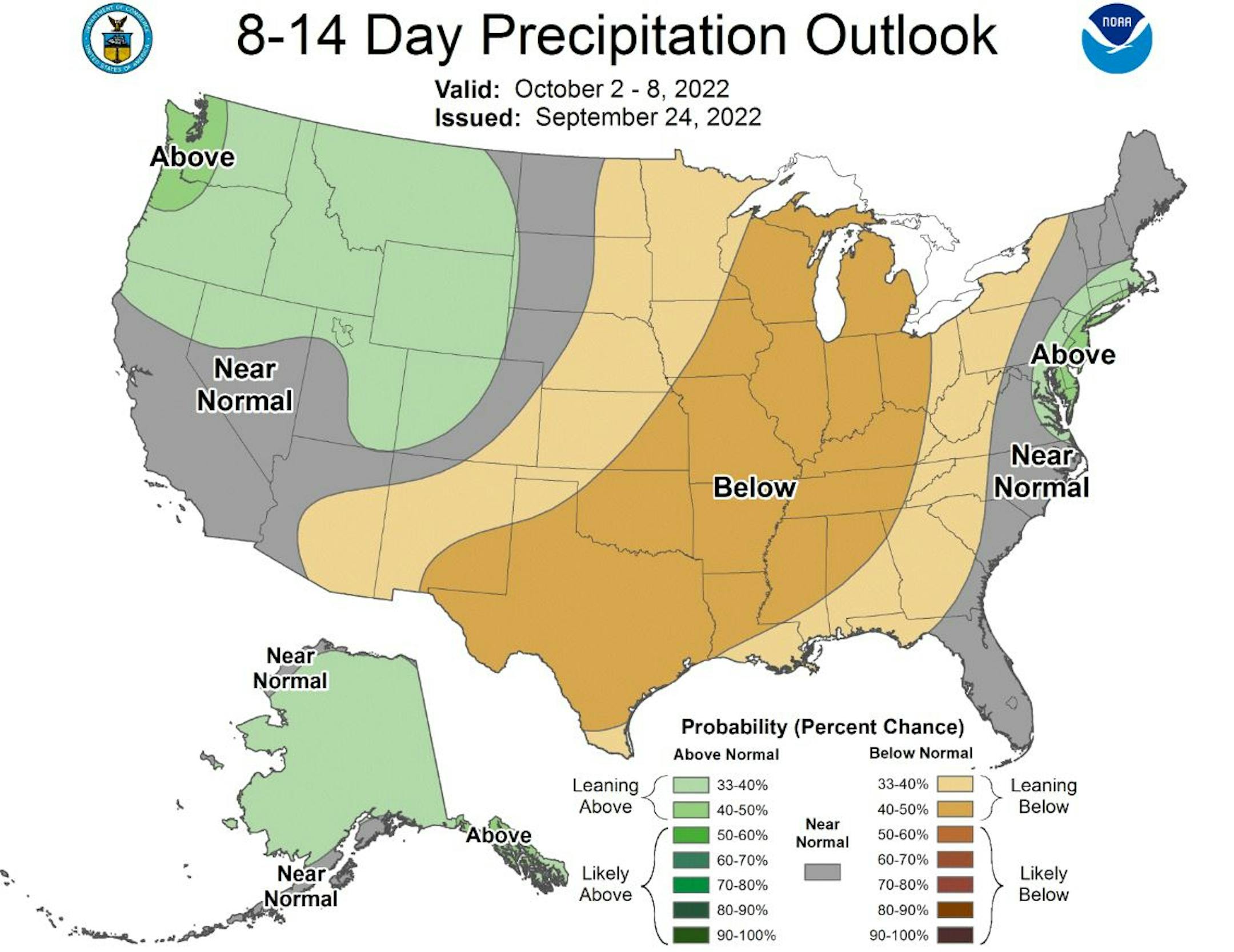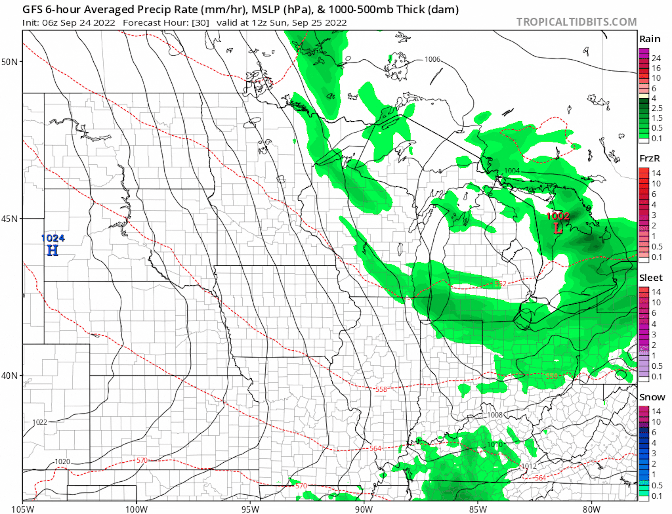 Looking at the precipitation departures from average for the month of September, many locations are running deficits, some bigger than others. Again, September has been a pretty dry month in the Midwest with the exception of southern Wisconsin.