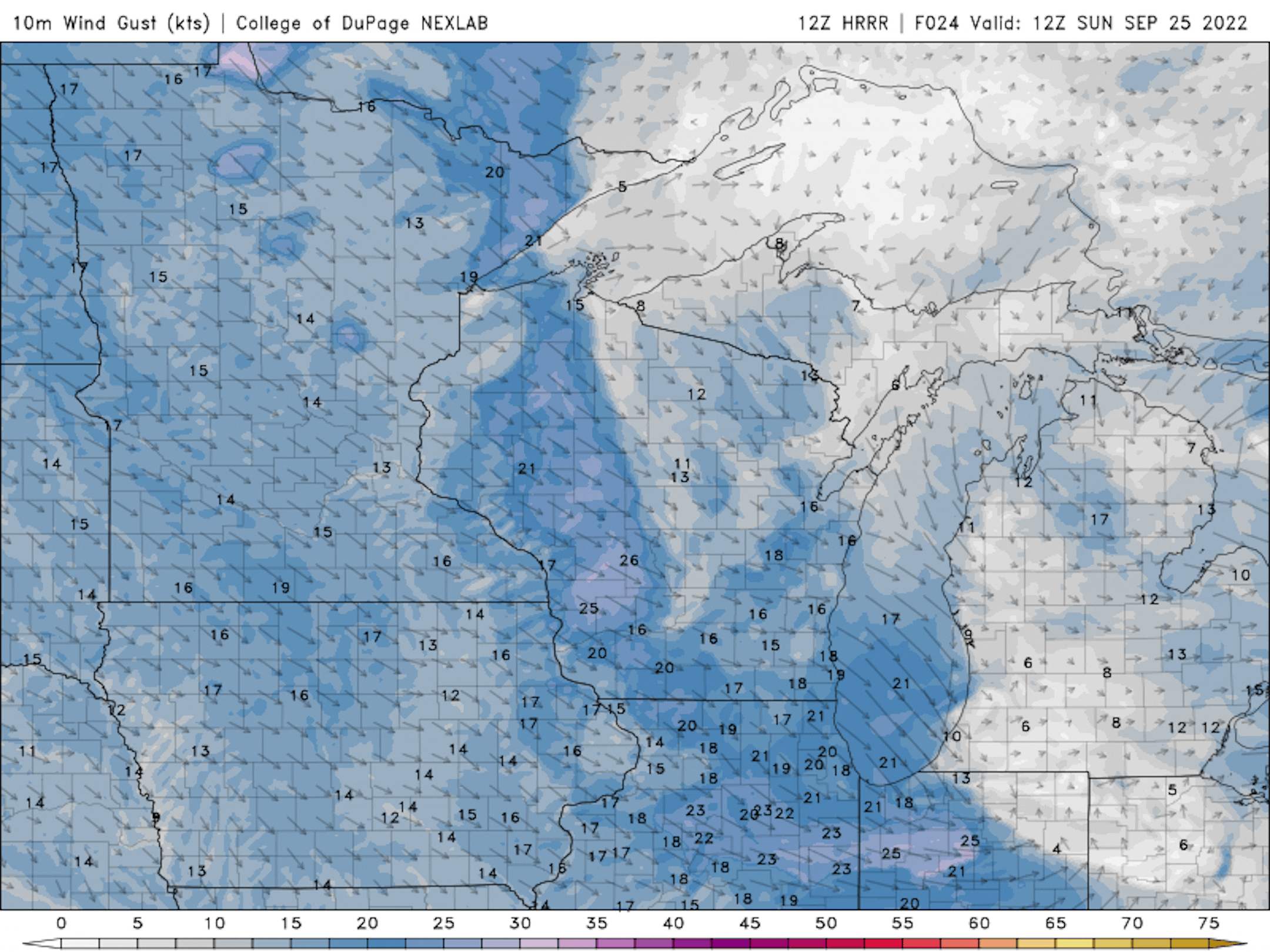 Hold onto your hats - Sunday is expected to be a VERY windy day across the region. Thanks to our departing rain maker from Friday/Saturday and an approaching bubble of high pressure, the pressure gradient across the Upper Midwest will be quite squished, allowing winds to gust up close to 40mph on Sunday.