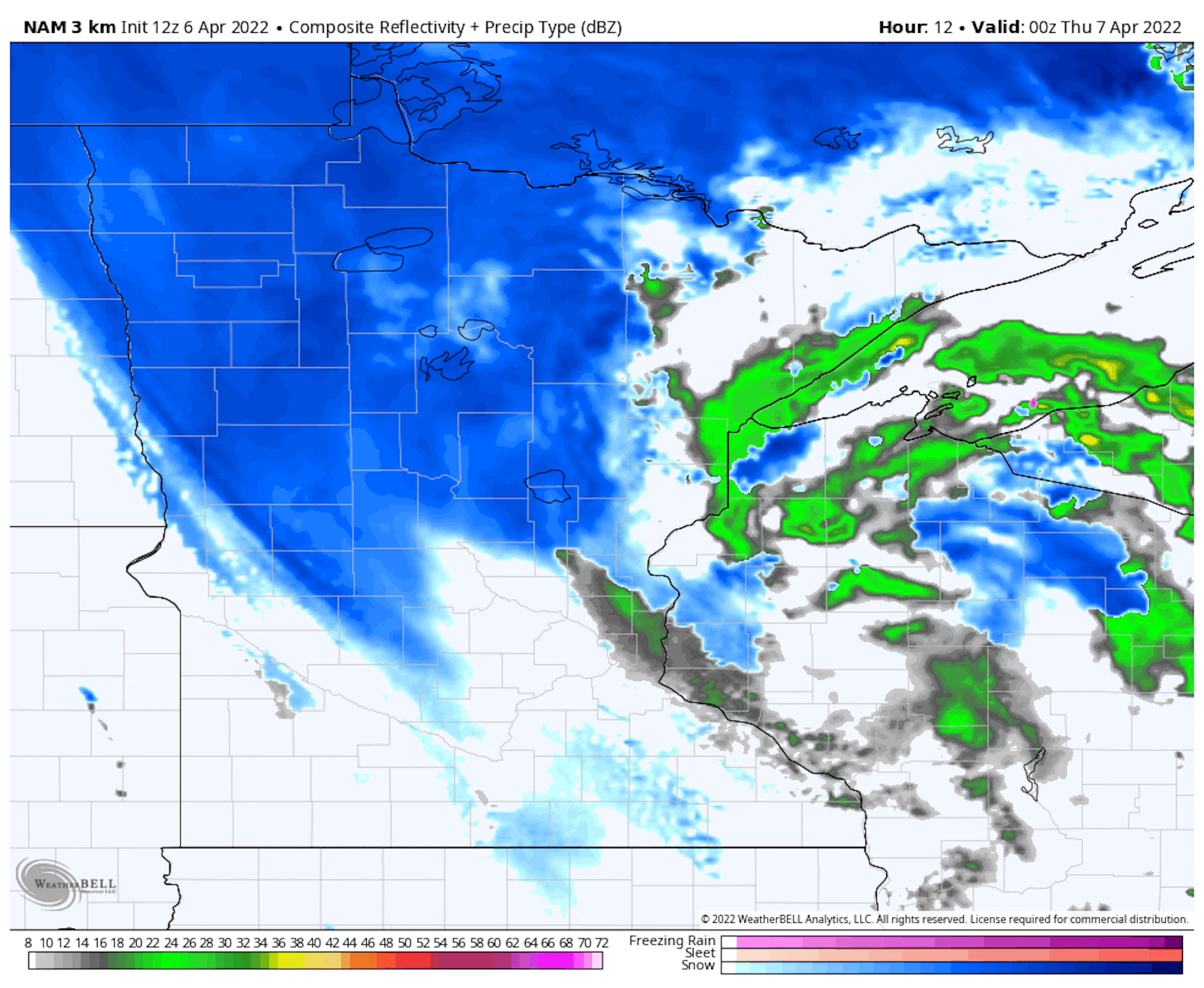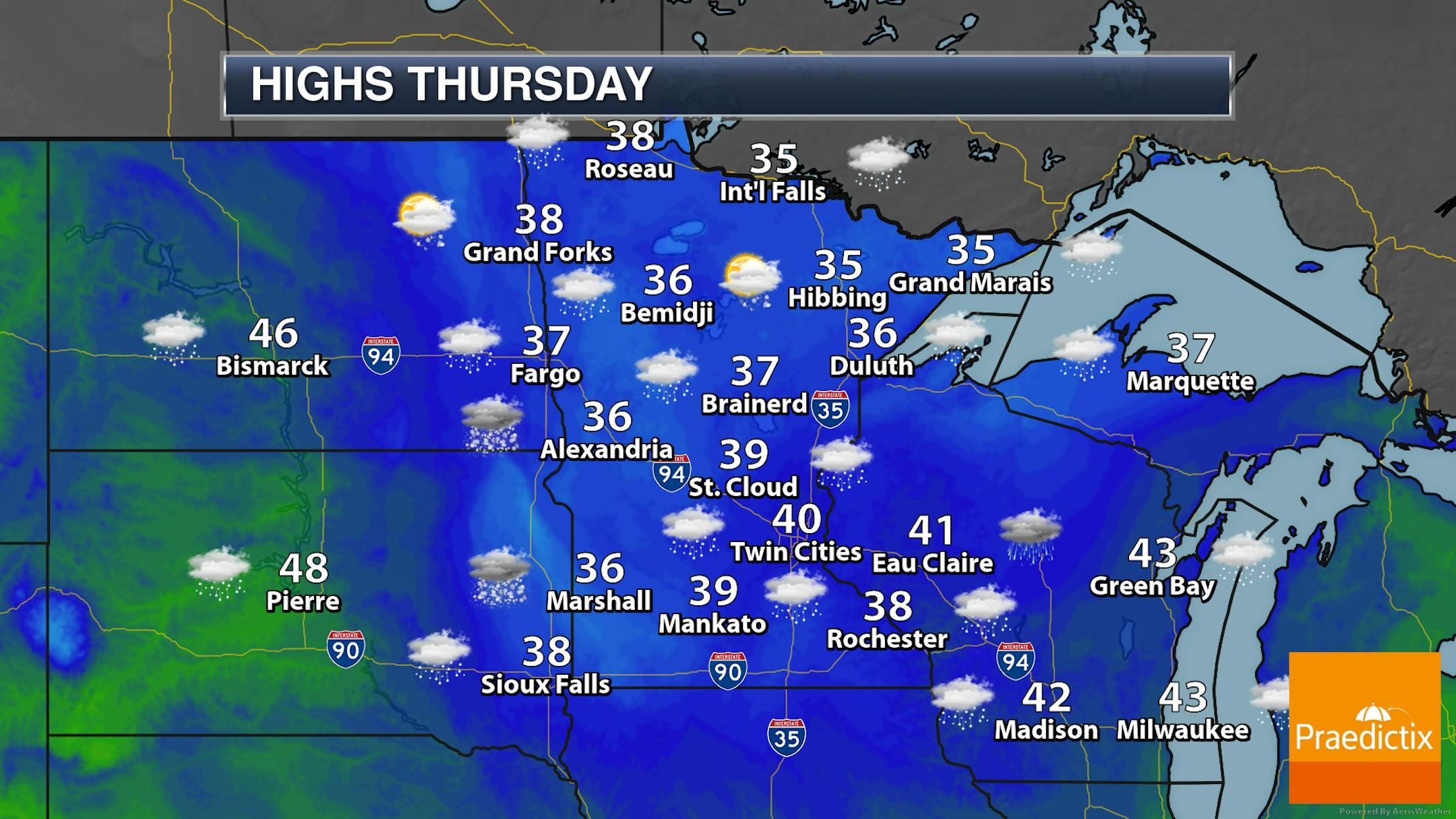 The system that has been hanging out across the upper Midwest will continue to do so through Thursday Night, bringing at least scattered rain and snow chances along with it before precipitation finally pushes out of the state heading into early Friday.