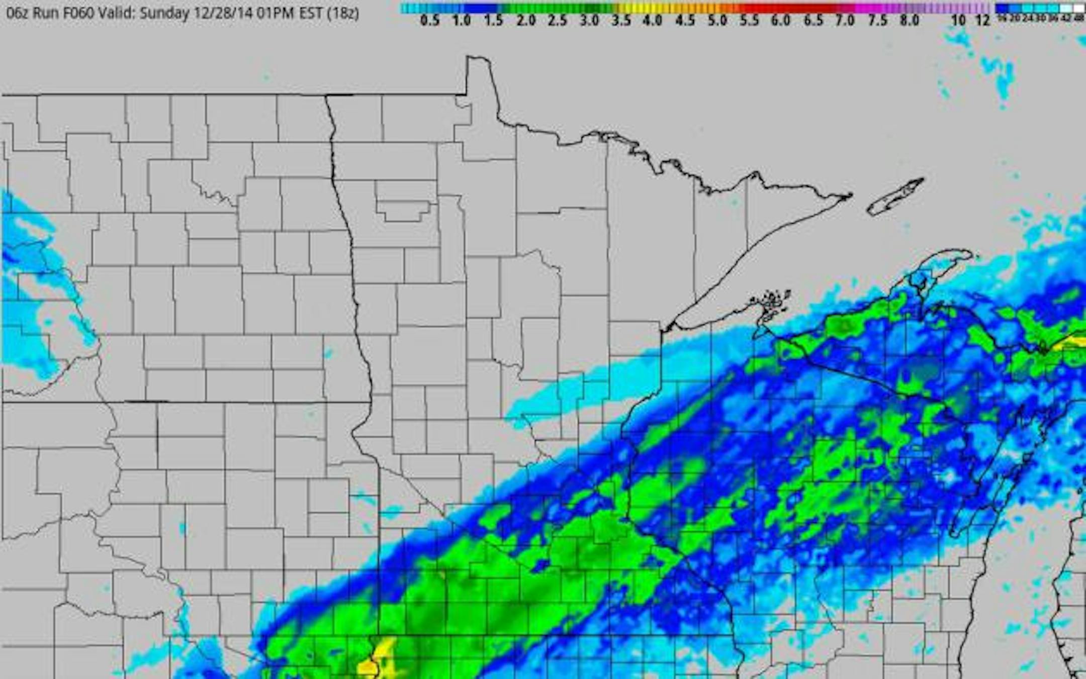 The band of wintry weather was expected to slide over much of southern Minnesota and western Wisconsin into Saturday morning. The snow should taper off by noon Saturday, with low temperatures following for the next few days, including negative temps overnight Monday and Tuesday.