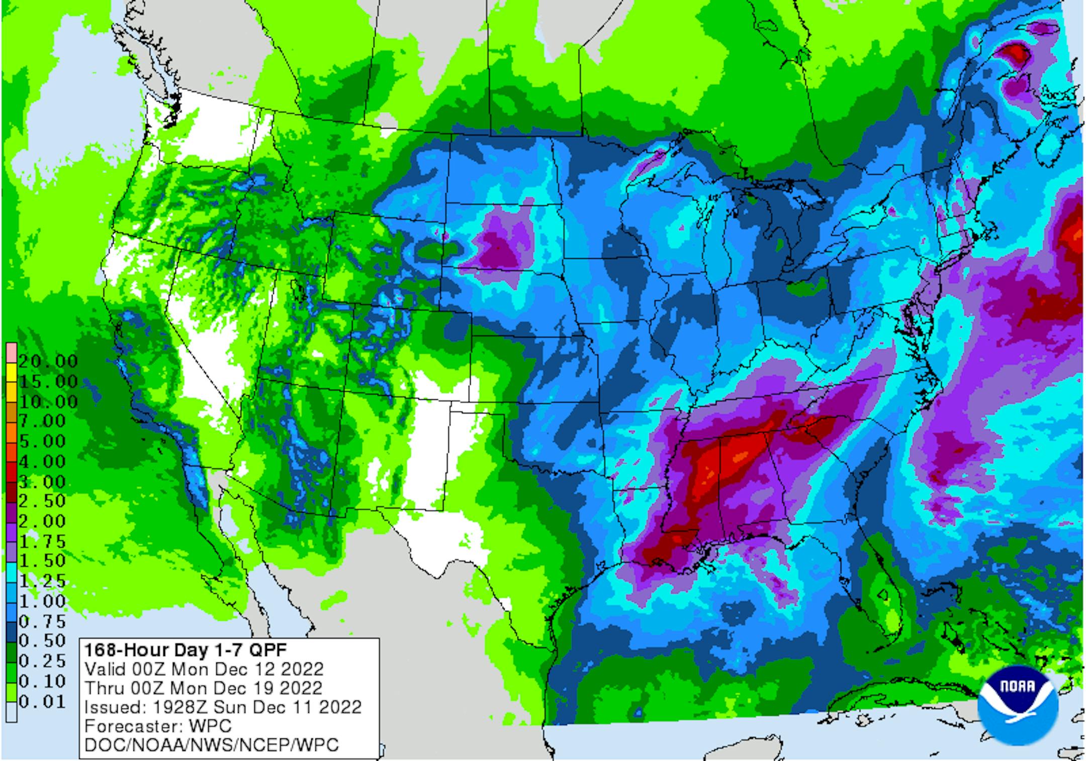 The precipitation outlook through the week ahead will be quite impressive. Much of the liquid precipitation that falls across the Central US will be connected to the Gulf of Mexico. Widespread 0.50" to 1.00" (plus) amounts will be possible through the week ahead. The heaviest rains will be found across the Southern US, where strong to severe thunderstorms will be found. There could be some 2" to 4" tallies possible across the the Gulf Coast States, where severe storms will be possible.