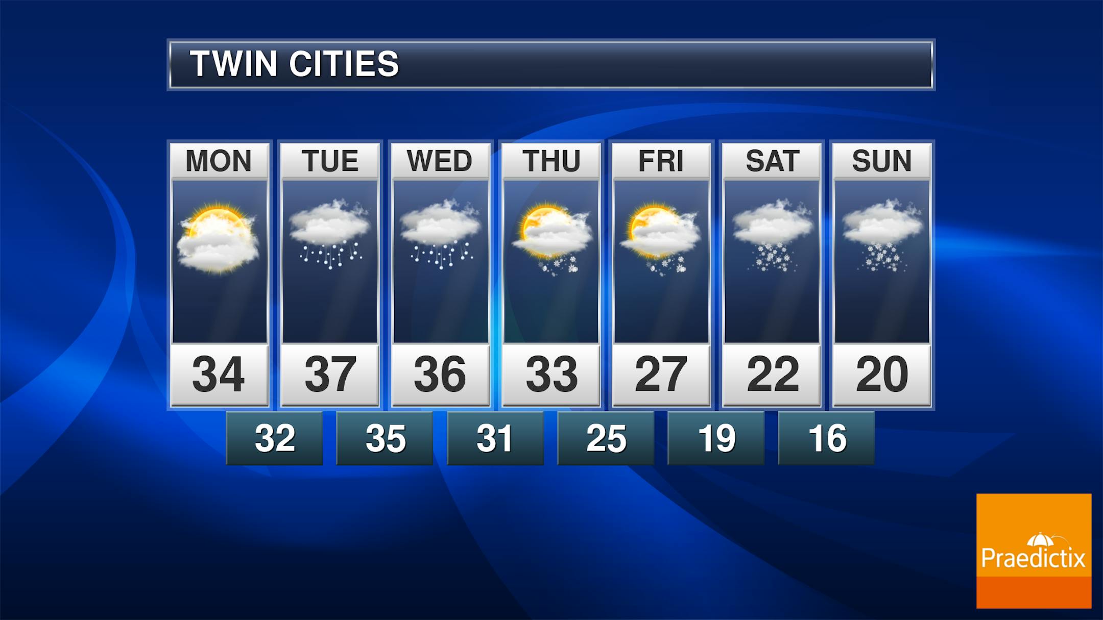 A potent storm system is on the way for the week ahead with a wide array of rain, freezing rain, sleet and snow across the Midwest. The heaviest snows will be north and west of the Twin Cities with a messy mix of wintry precipitation possible for the metro. This will be a long duration event, the messiest day will be Tuesday into AM Wednesday with snow and accumulations likely later in the week. Blizzard conditions will be possible across the Dakotas with blowing snow possible across central and northern Minnesota.