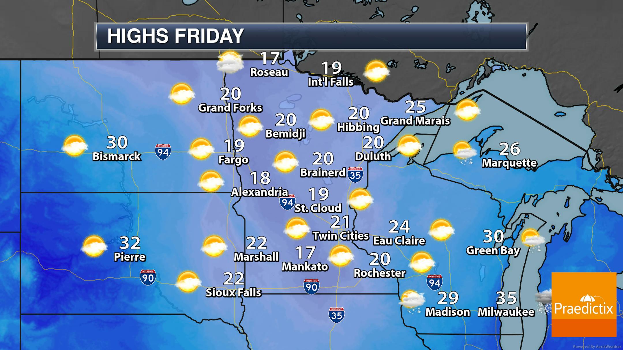 Well, 2020 is almost over - finally. Unfortunately, the problems of the world don't just magically disappear as we flip the calendar... but let's ignore that for the moment. As we wake up in 2021 on Friday, temperatures will be in the single digits across much of the state. Highs will climb into the teens and 20s across Minnesota Friday with quiet and partly sunny skies.