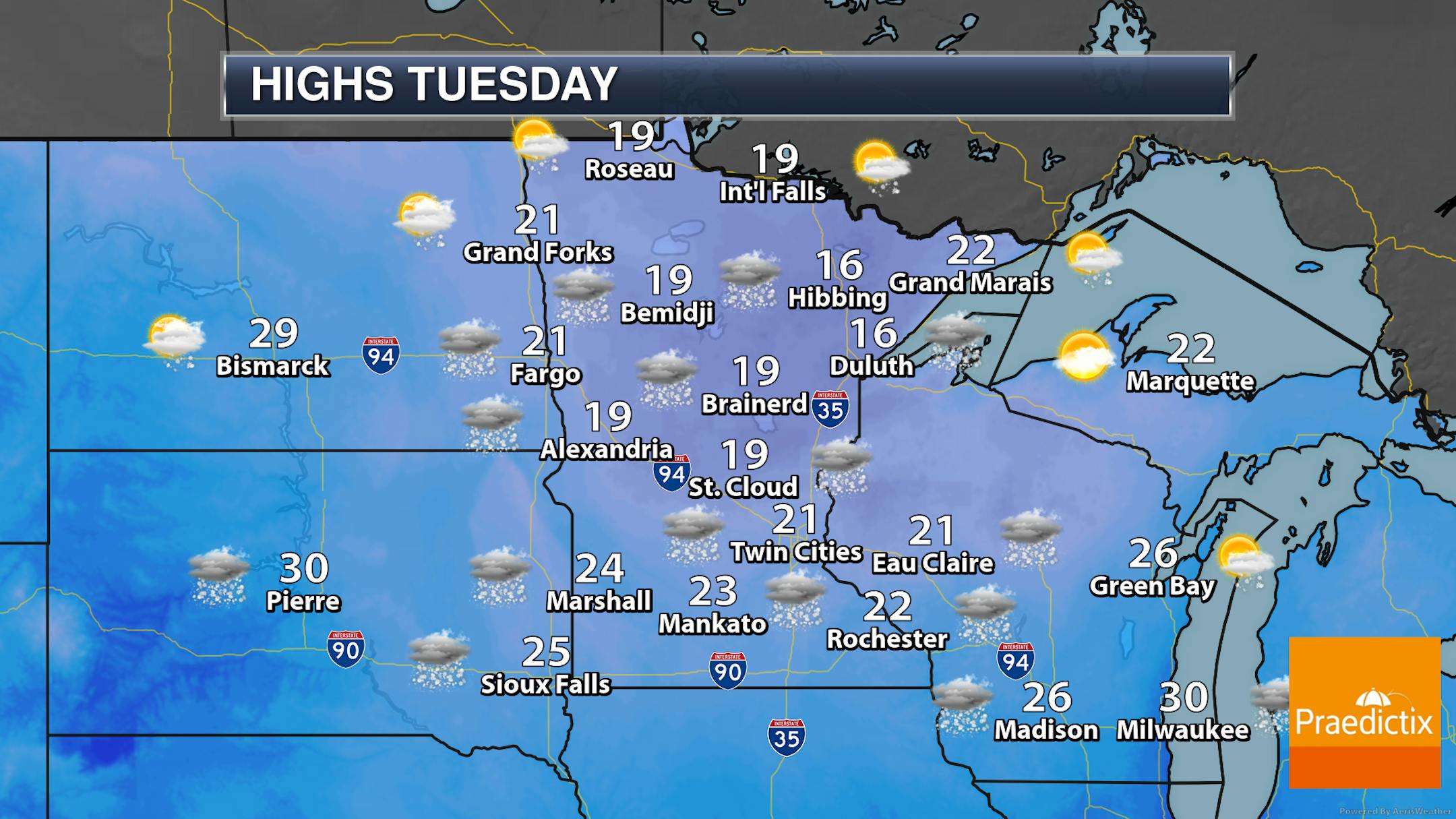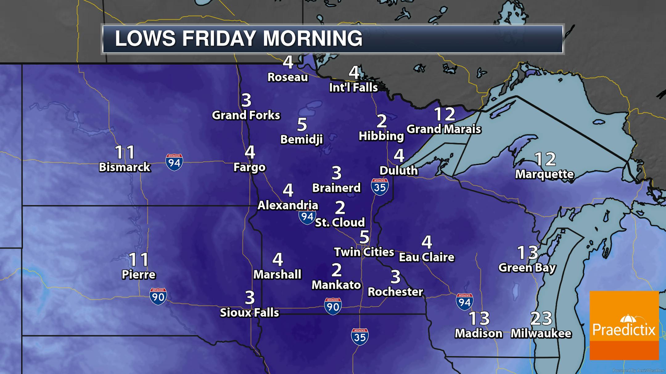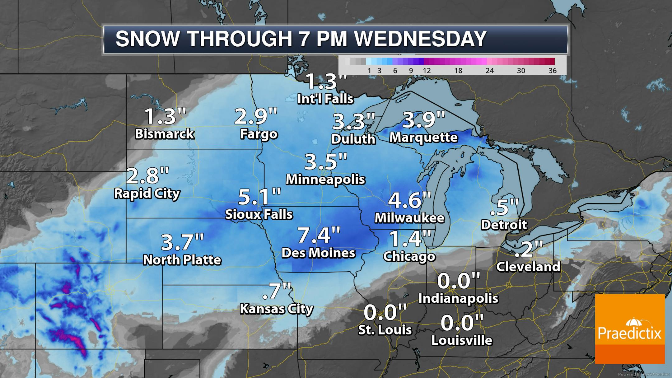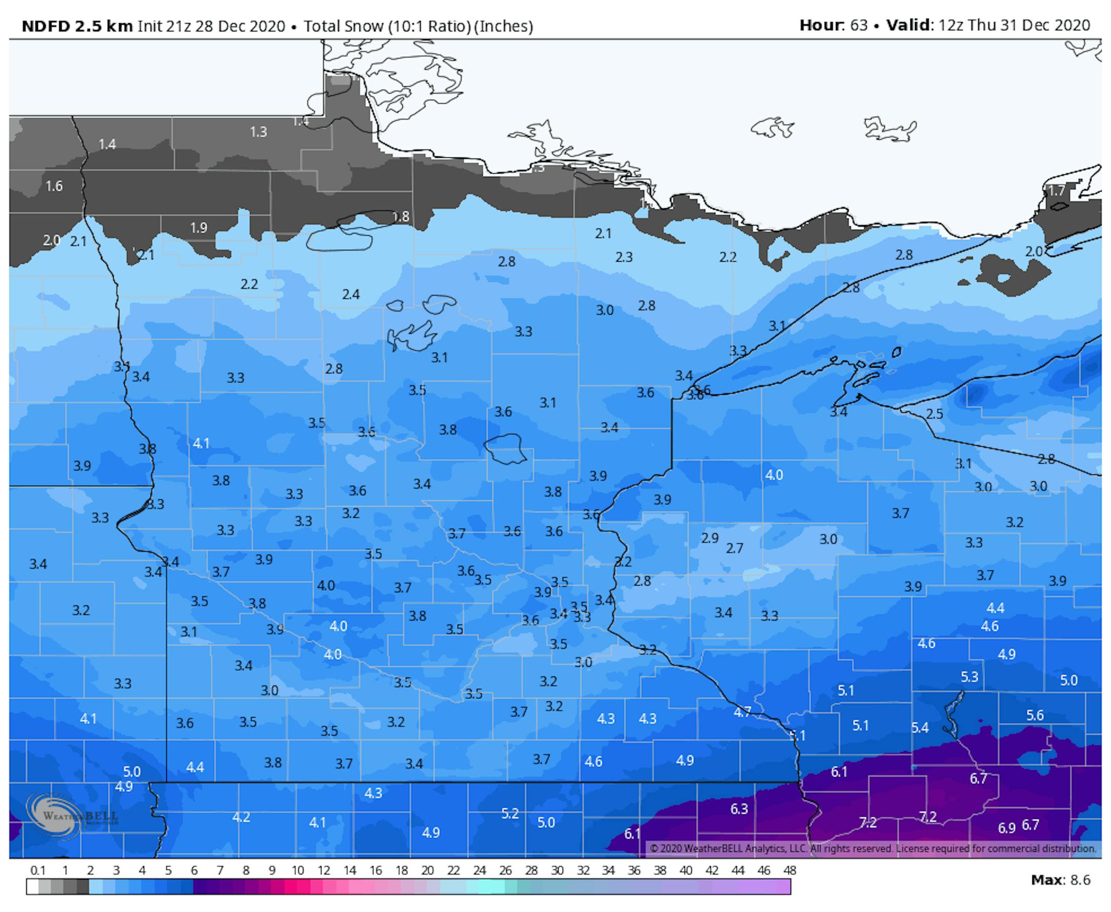 Overall this looks to bring about 3-5" of snow to most of central and southern Minnesota, with the forecast as of Monday evening showing about 3-4" across the metro. The heaviest amounts will be to our south and southeast across portions of Iowa and Wisconsin, where some 6-9" totals will be possible.