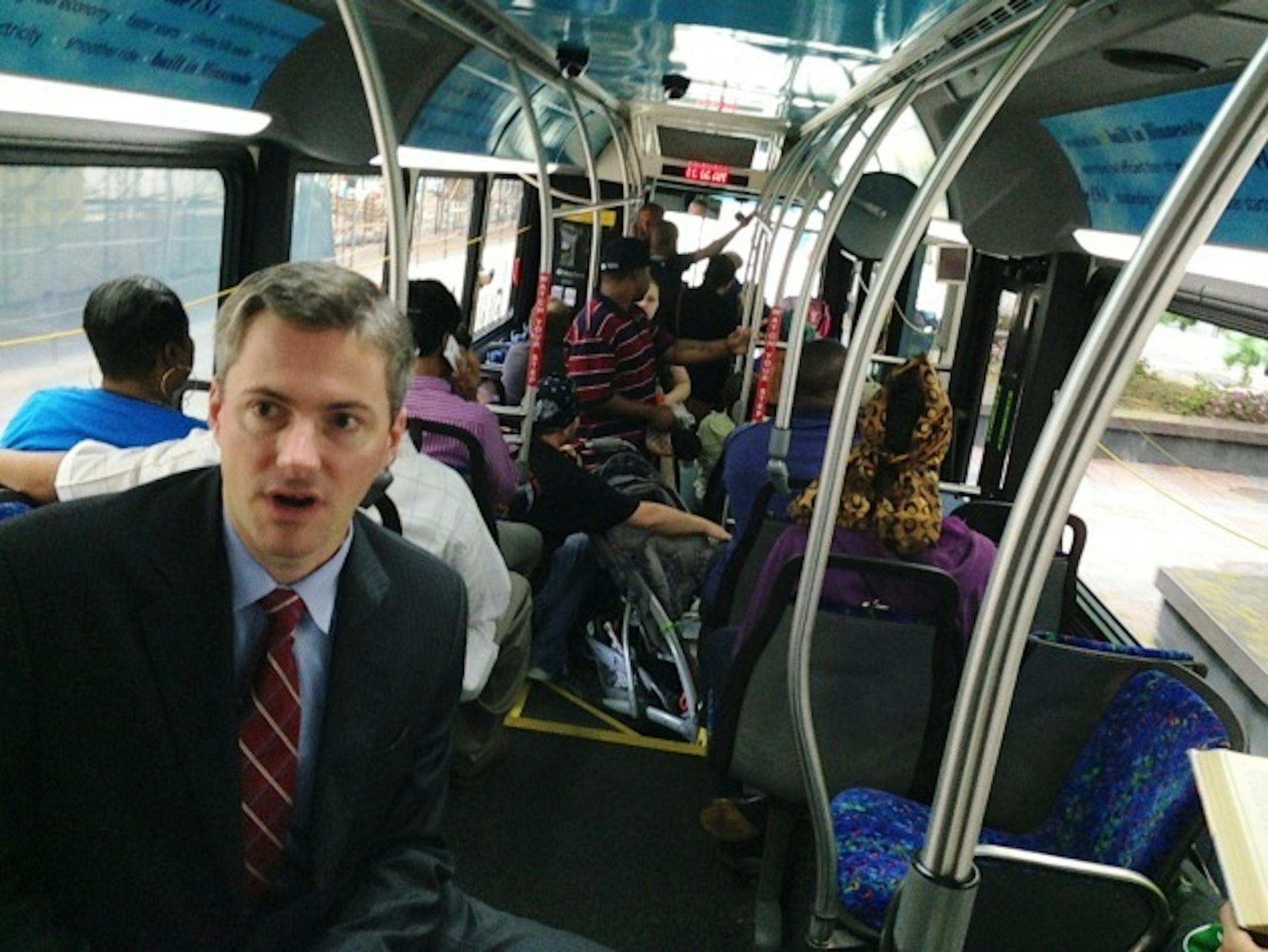 Riders on a bus cruising down Nicollet Mall Thursday were lost in their books and iPhones when Cam Winton started talking about streetcars.