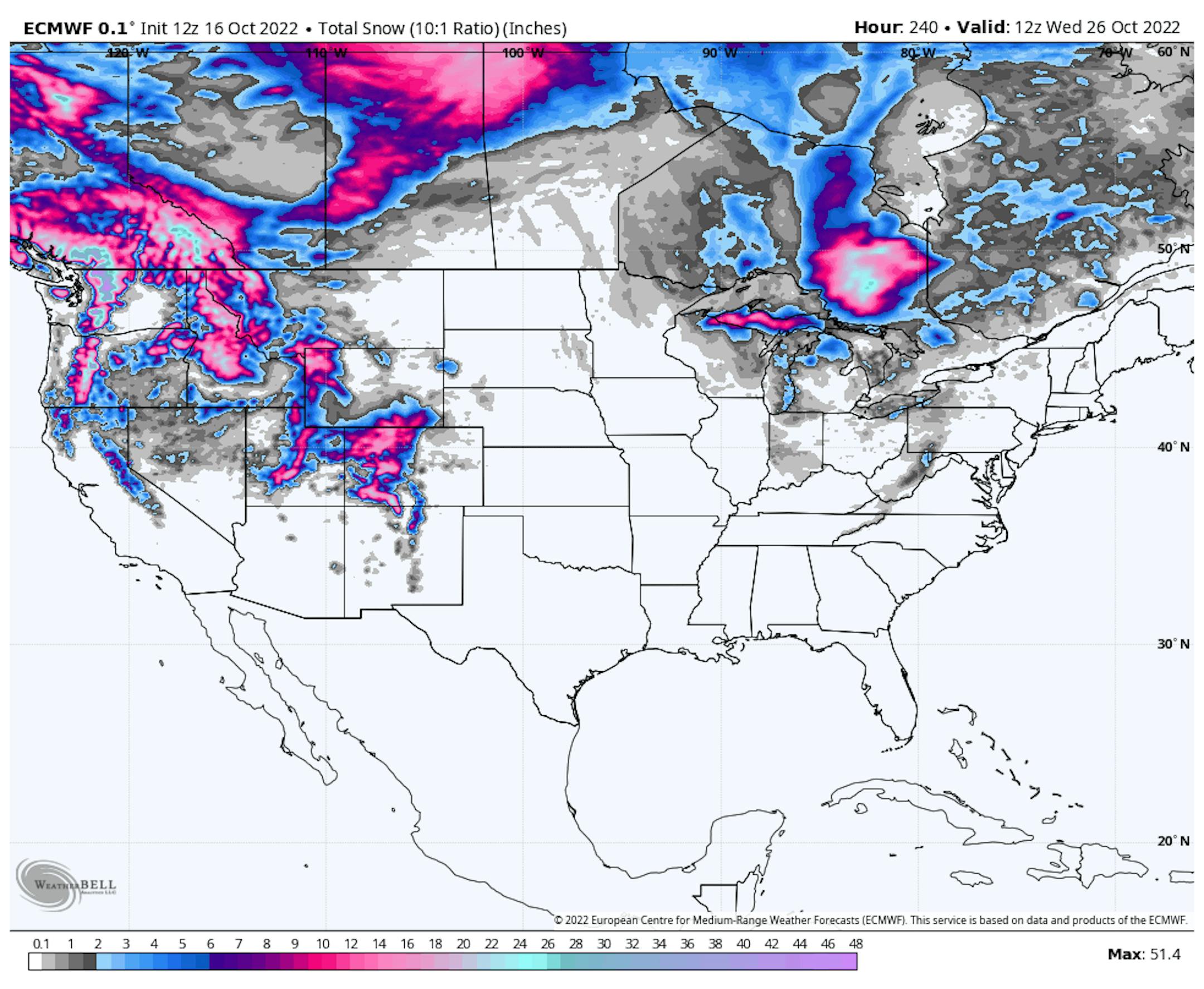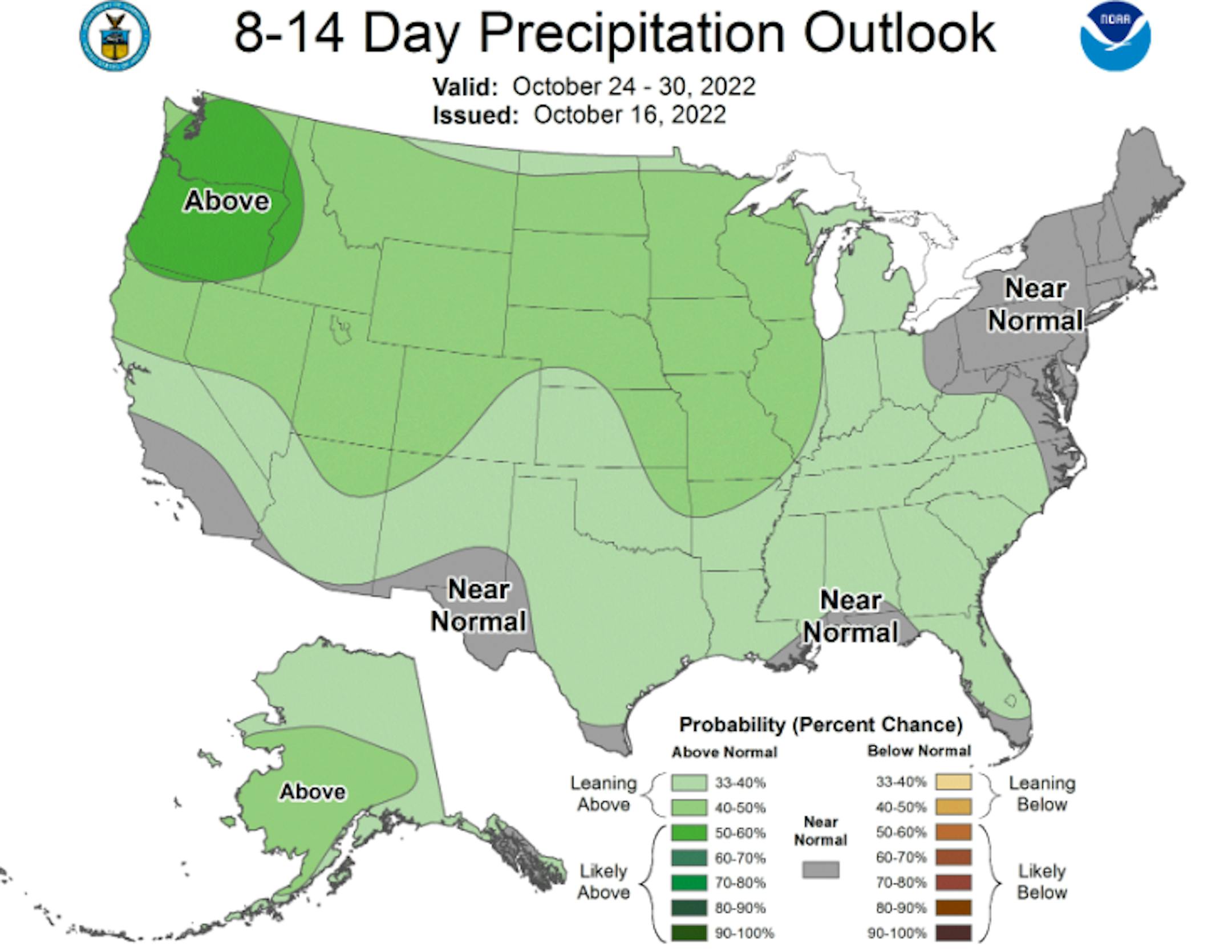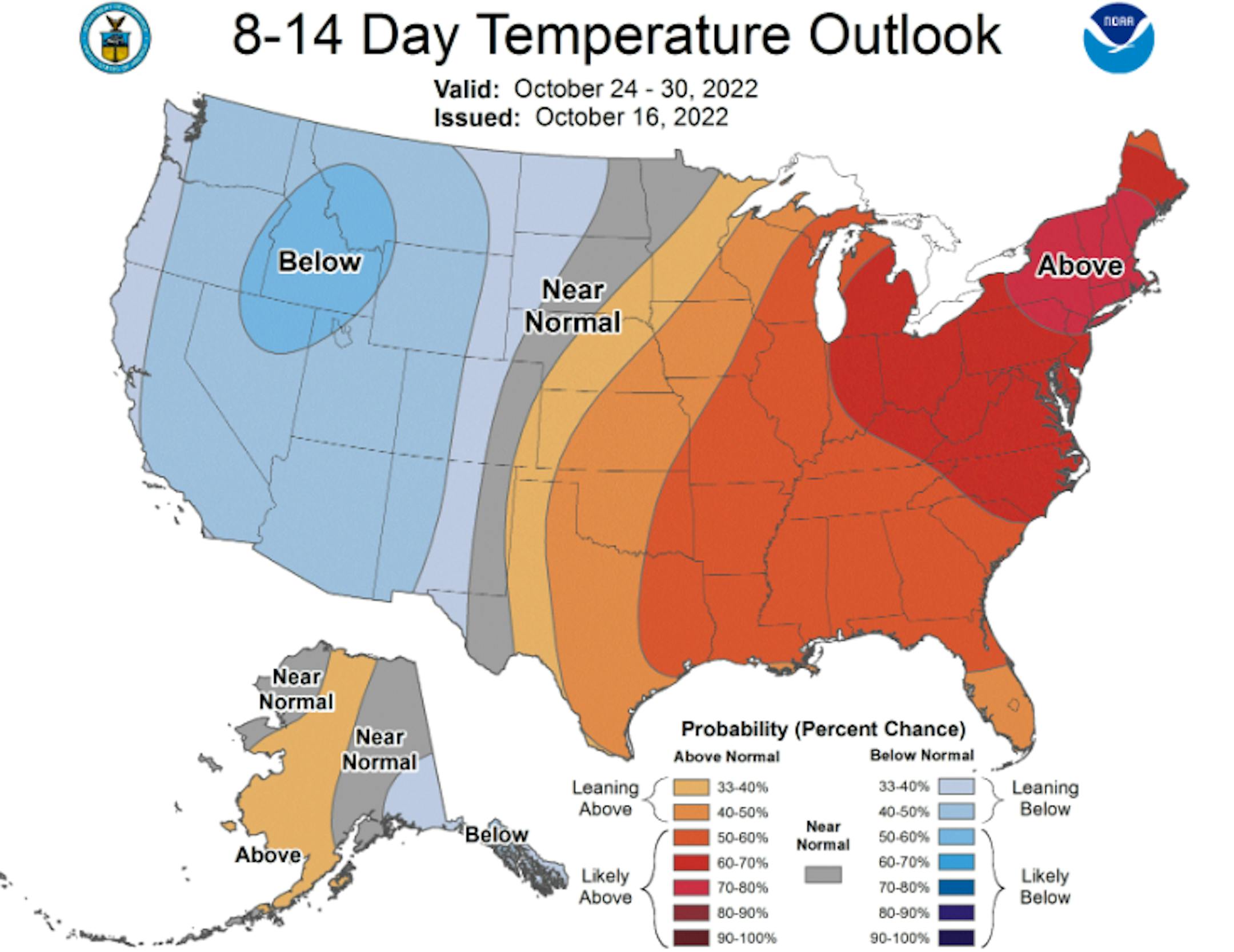Here's the extended temperature outlook for Minneapolis through the end of the month. Note that readings will be very chilly through the first half of the week with a gradual warming trend by the weekend. We could be near 70F again this weekend before another cool snap arrives for the last full week of October.
