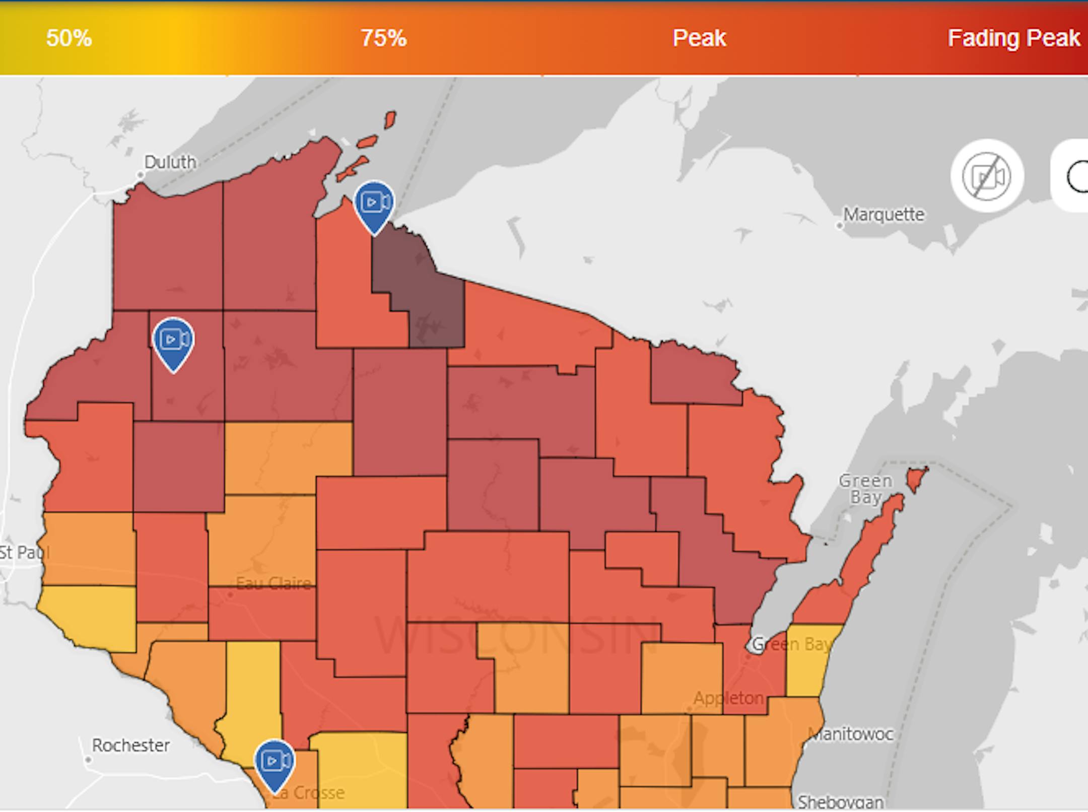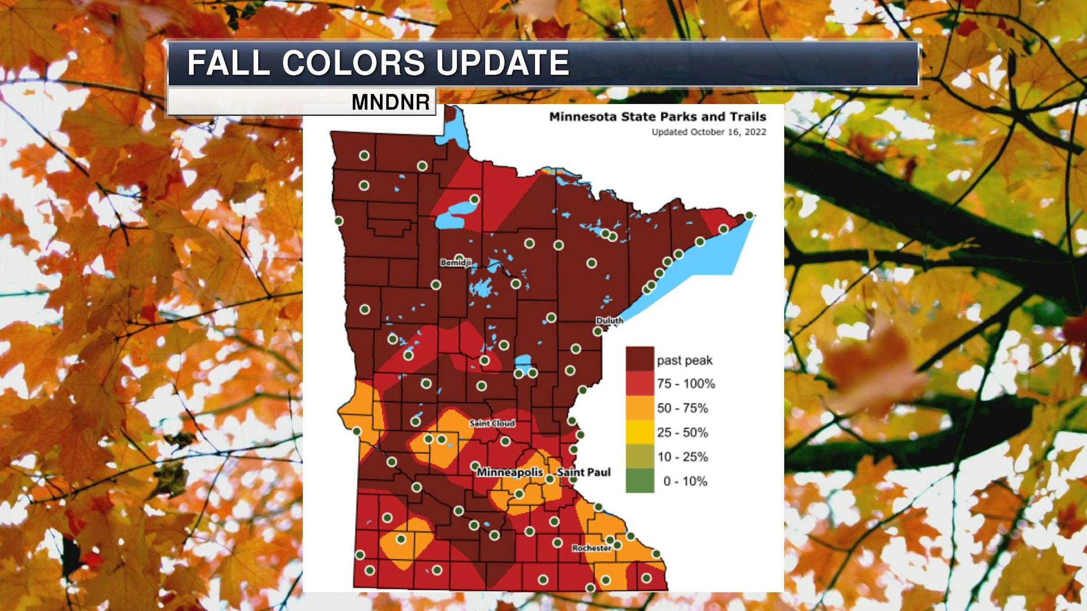 Here's the fall color update for Minnesota & Wisconsin. Fall colors are peaking or past peak in many spots across the central and northern half of Minnesota. Colors are peaking across the southern half of Minnesota and into much of Wisconsin.
