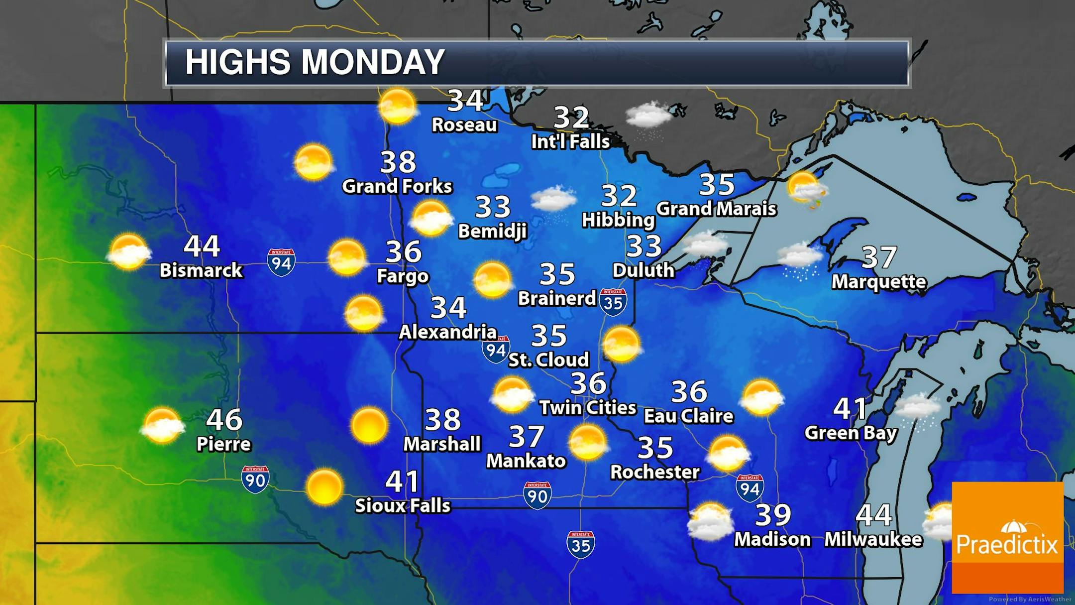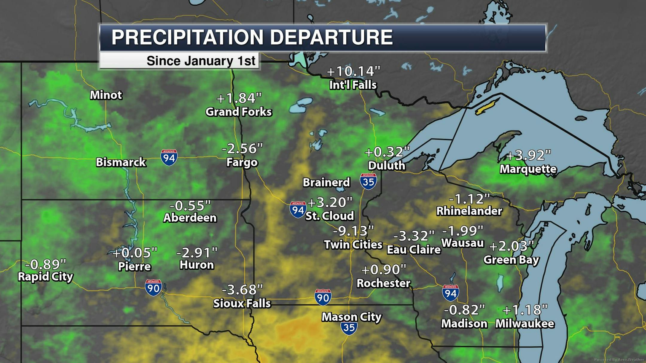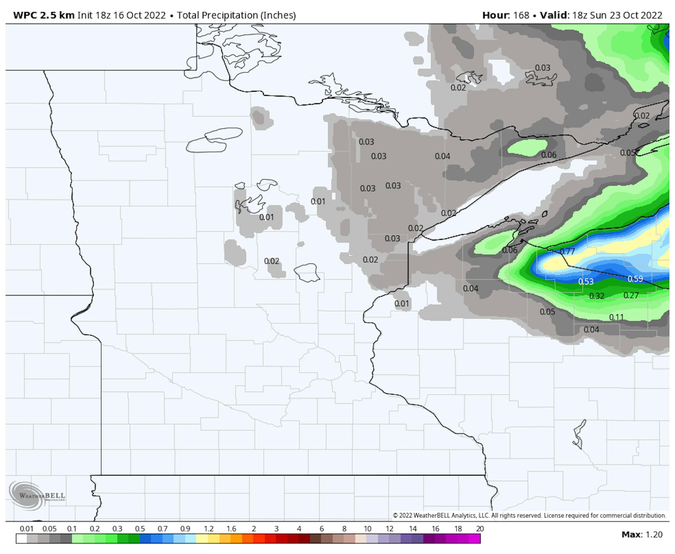 The weather outlook through AM Saturday looks fairly quiet with minimal precipitation chances in the Upper Midwest. An area of low pressure will meander over the Great Lakes through midweek, which will keep our weather rather stagnant and dry closer to home. A clipper will push through northern Minnesota late week, but the best rain chances will be up north.