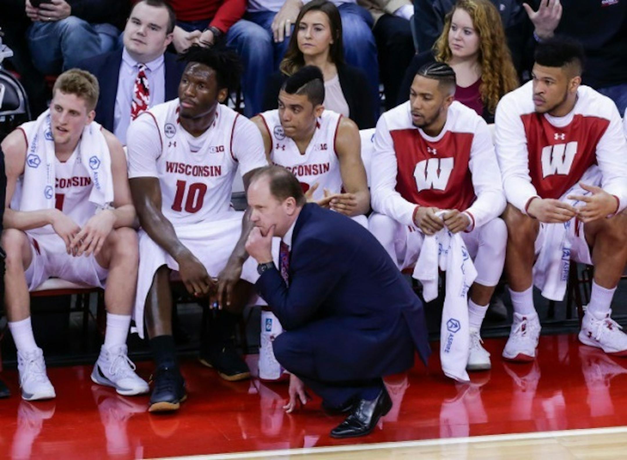 The fall from the Top 10 began on Feb. 12. Wisconsin lost to Northwestern 66-59 and then to Michigan 64-58 in the same week. The Badgers recovered with a 71-60 win over then-No. 23 Maryland, but followed it up with a three-game losing streak. Wisconsin lost to Ohio State 83-73, Michigan State 84-74 and Iowa 59-57.
