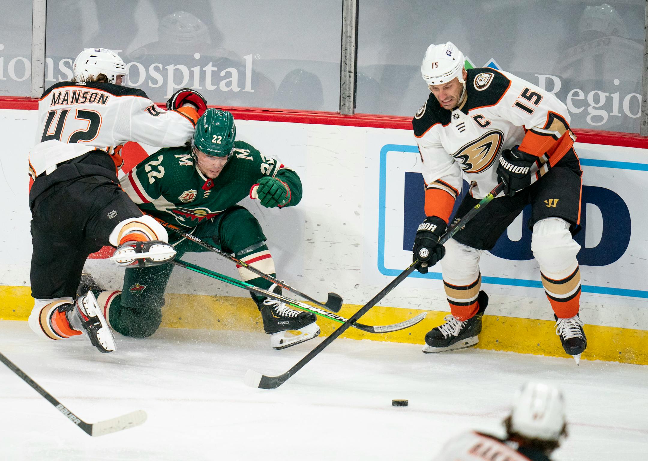 Though he was held without a point for the fourth consecutive game, Wild veteran Zach Parise was a factor in Monday's game, providing energy on the forecheck and drawing two Ducks penalties. He nearly scored on the second one, when Jacob Larsson was forced to hook him to prevent a tap-in goal.