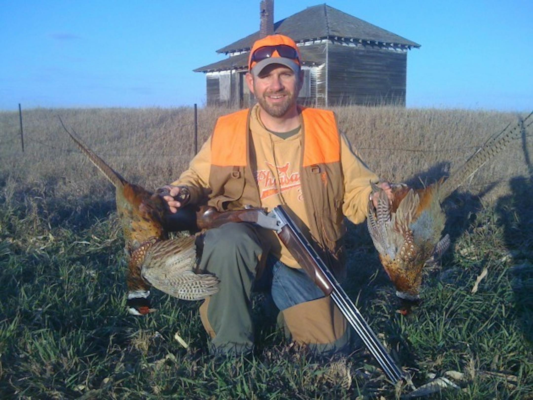 We made our way north to Bruce's place and hunted a few side roads (grass lines next to corn fields). We didn't have a dog and weren't expecting much but thankfully we flushed two roosters and and Carter was kind enough to let me shoot both!