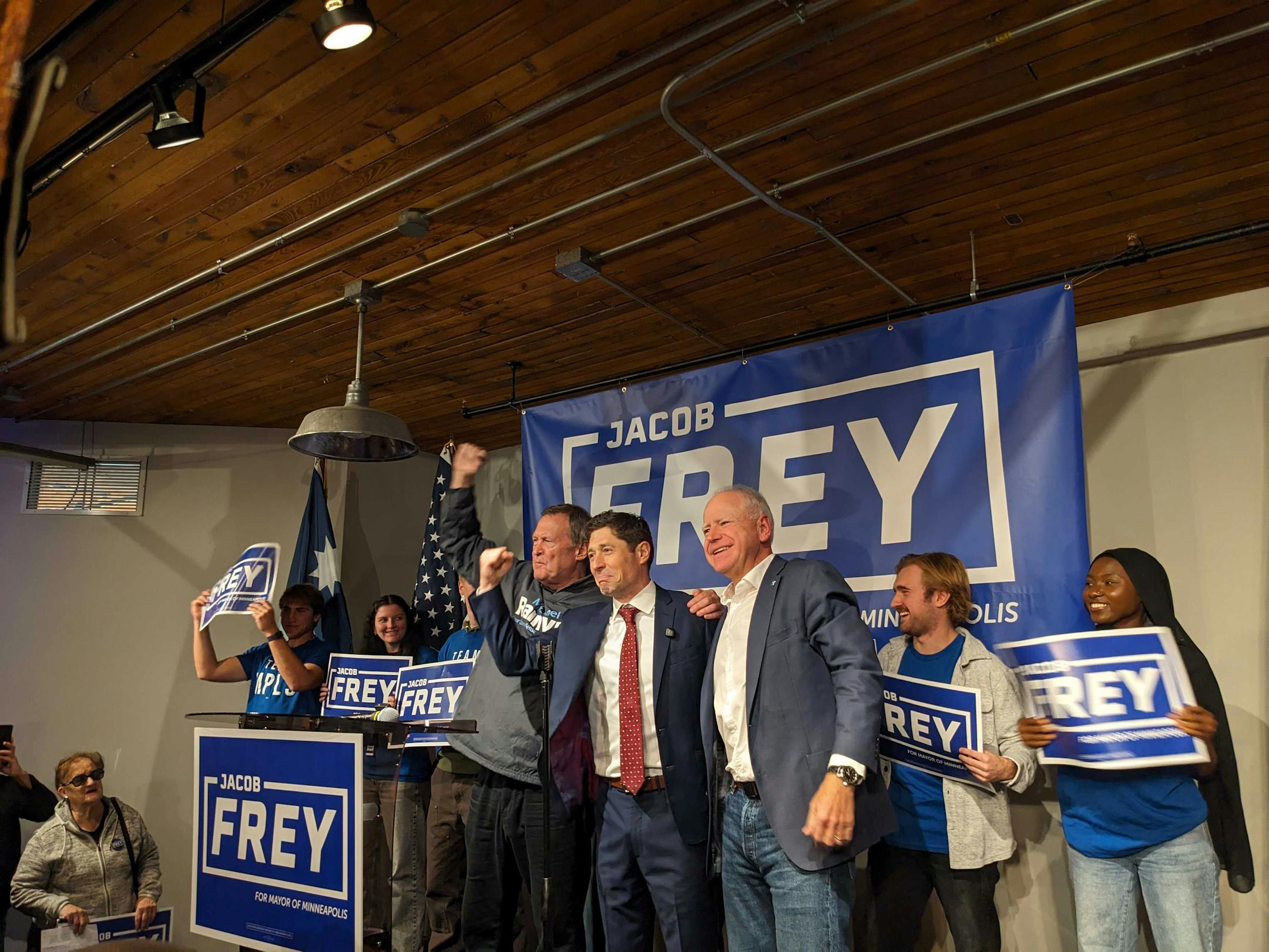 Minneapolis Mayor Jacob Frey gave a fiery speech before a packed crowd in Northeast, while opponent Omar Fateh, a DFL state senator, wound his way through the Mill City Farmers Market and visited 24 Somali Mall in the Ventura Village neighborhood.
