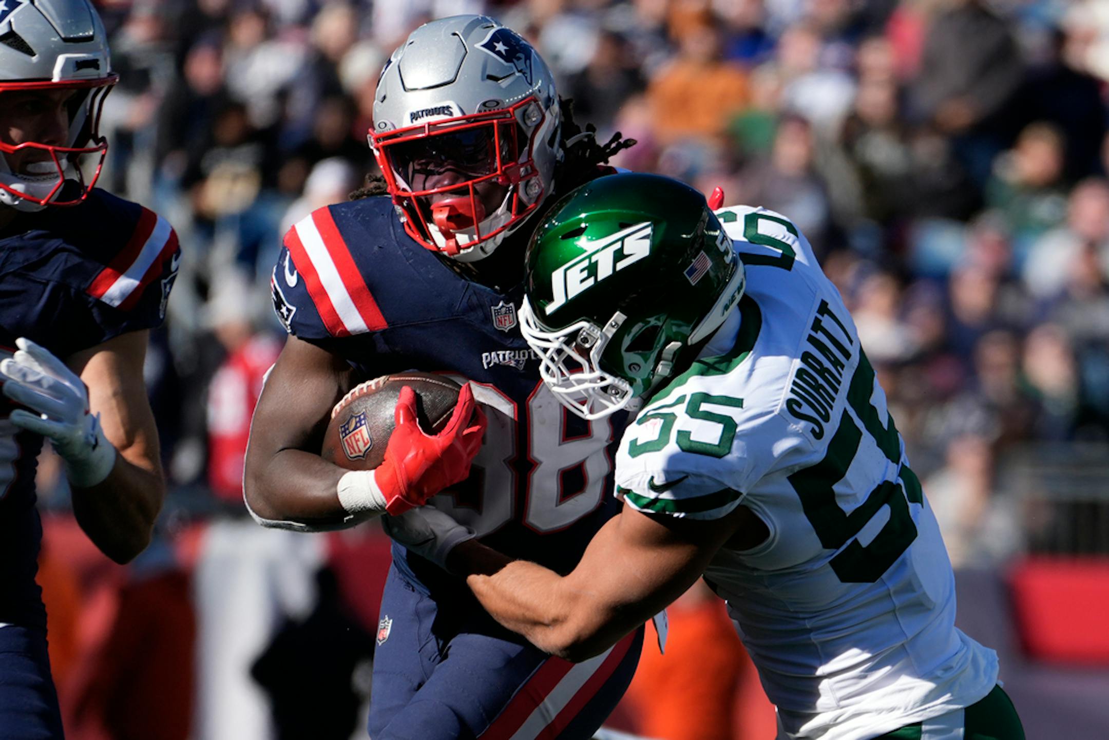 FOXBOROUGH, Mass. — Inches from the goal line with one last chance to punch in the game-winning score, the New England Patriots proved to be tough enough to beat Aaron Rodgers and the stumbling New York Jets.