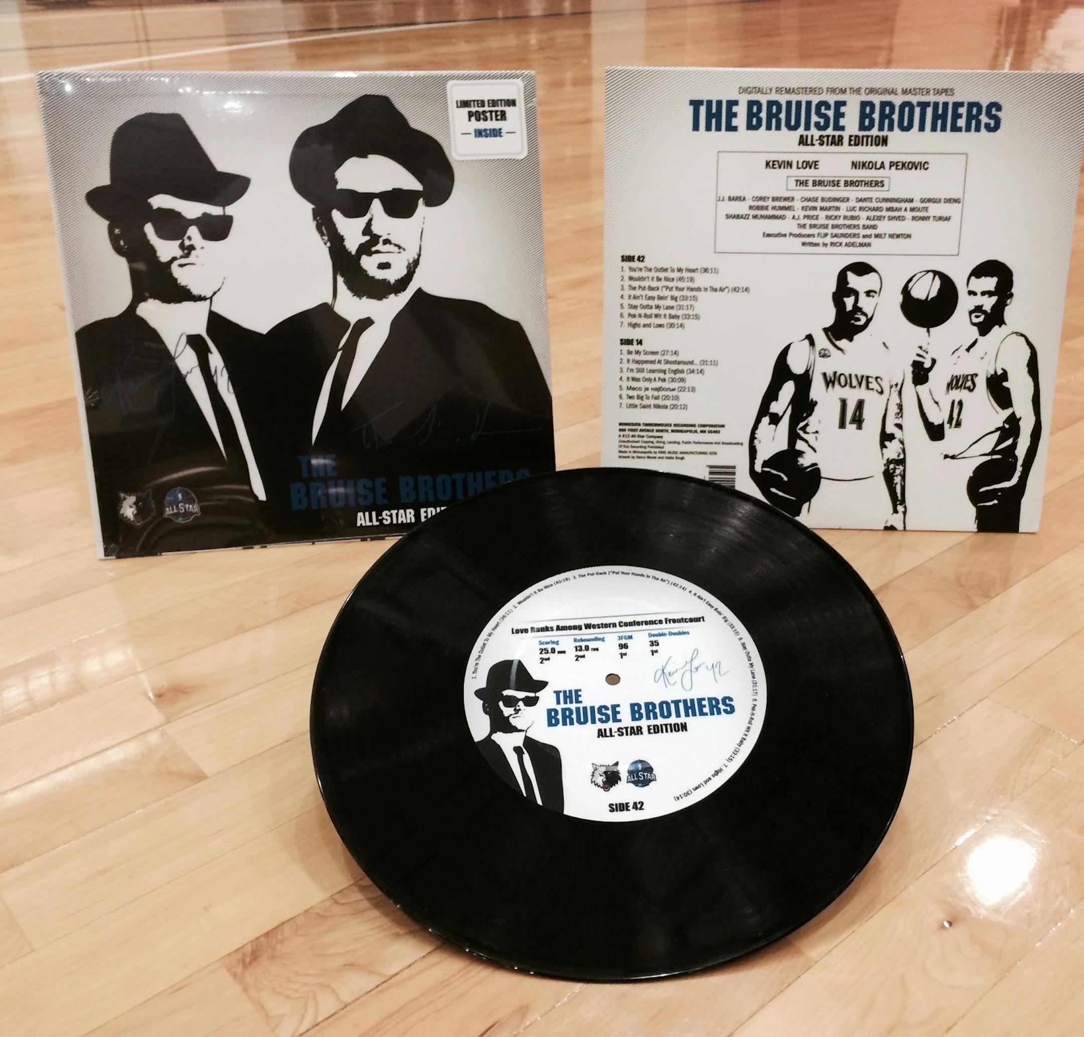 One of them already has "hit it," with Love being voted a Western Conference starter. Now the Wolves are making a late push to have Pekovic join him in New Orleans as a reserve. The marketing campaign centers around the Bruise Brothers concept, which includes the production of a limited number of actual vinyl albums bearing their likeness.