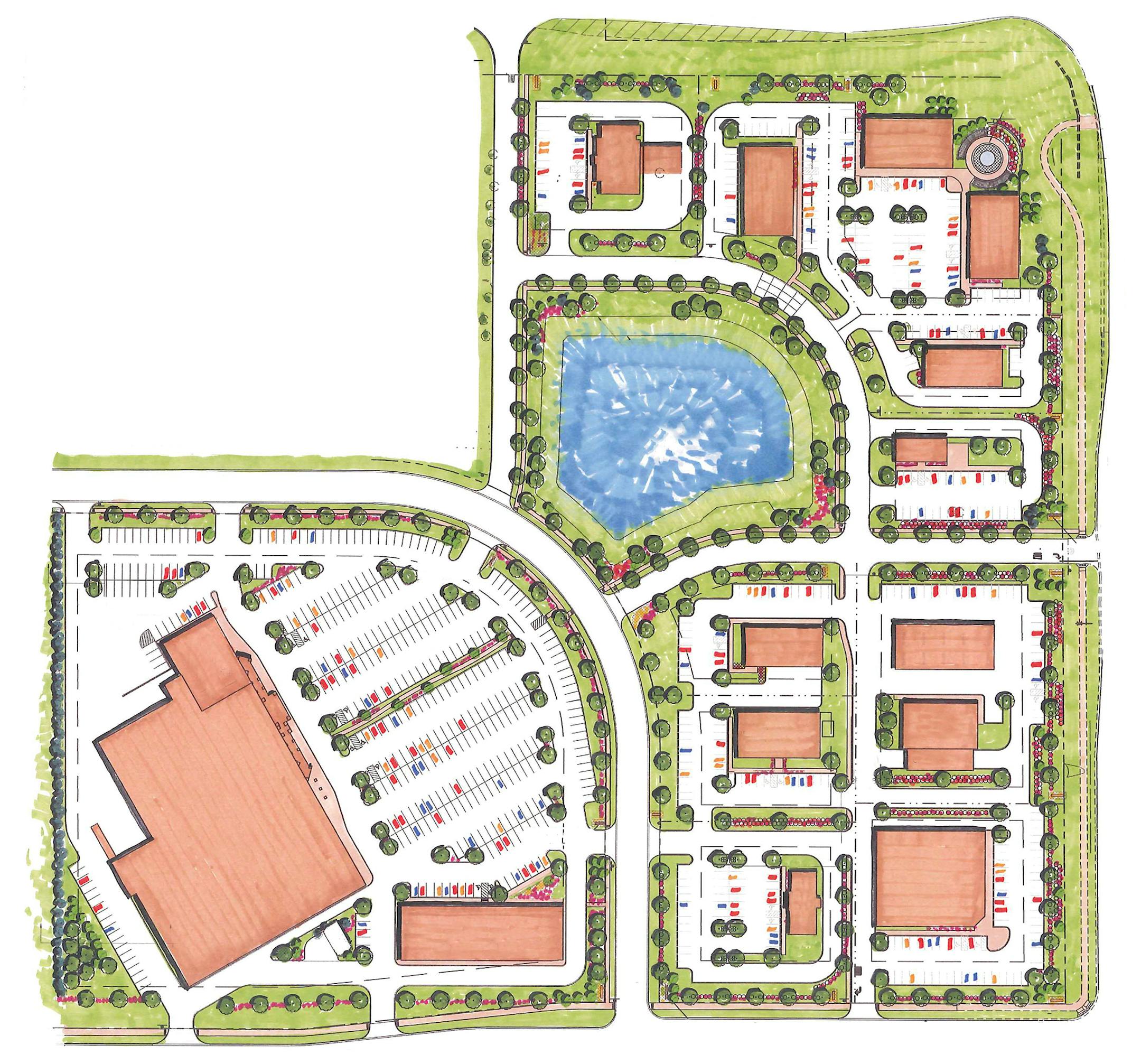 Plans for the so-called urban village also include trails, perennial gardens, an underground pedestrian tunnel, benches and a new stormwater retention pond. Rick McKelvey, assistant vice president of development at United Properties, described the village as "a grouping of closely-knit properties on moderately small lots, all connected by trails and sidewalks and significant landscaping."